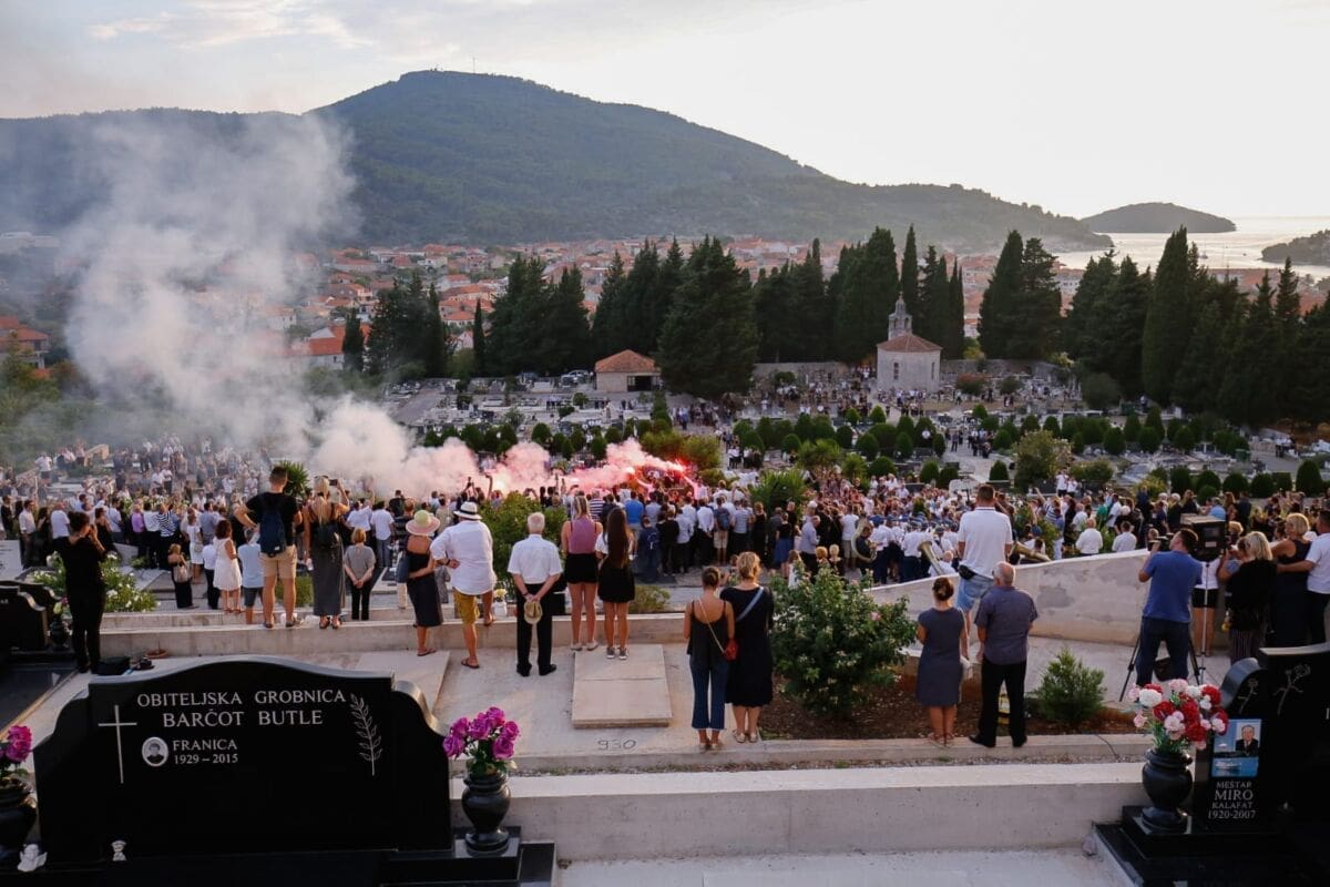 Nakon veličanstvenog ispraćaja iz Splita, legendarni pjevač Oliver Dragojević u srijedu iza 18 sati sahranjen je na mjesnom groblju u rodnoj Vela Luci.