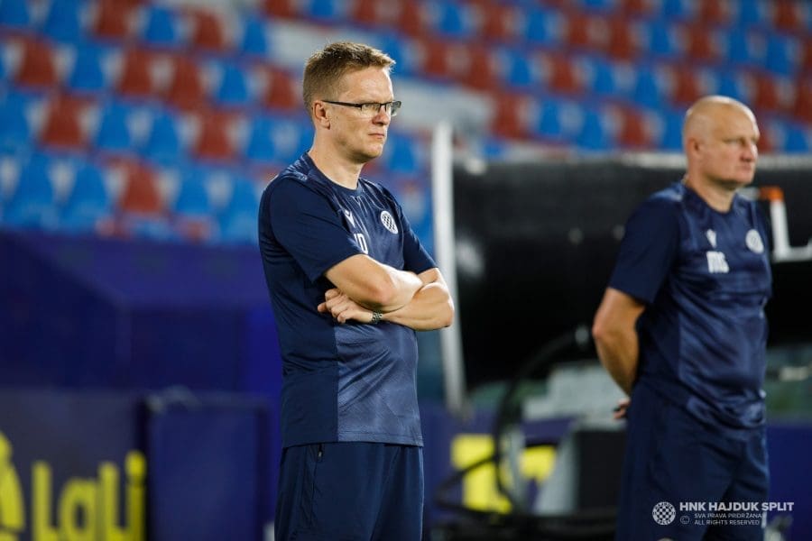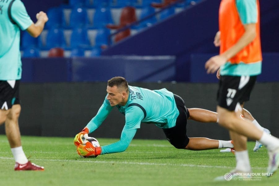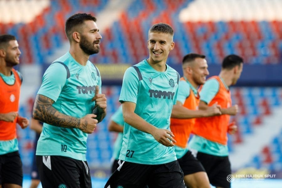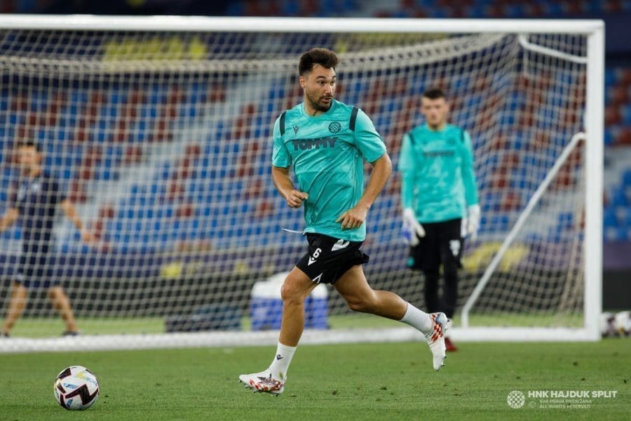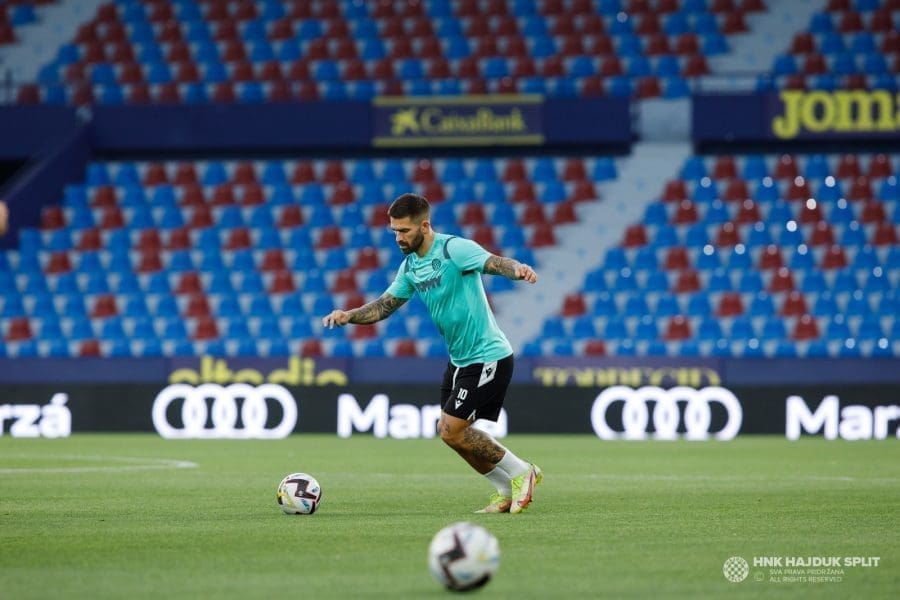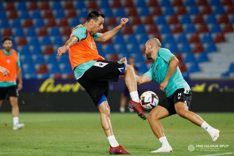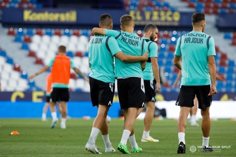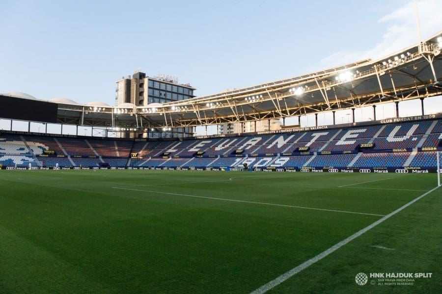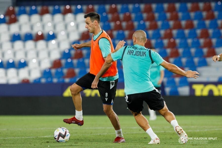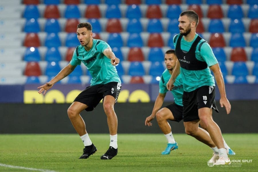 Odradili su nogometaši Hajduka večeras i službeni trening na stadionu Ciutat de Valencia, posljednji uoči prvog dvoboja Play-offa Konferencijske lige protiv španjolskog Villarreala. Trening je, sukladno UEFA-inom protokolu, trajao sat vremena u domu Levantea.