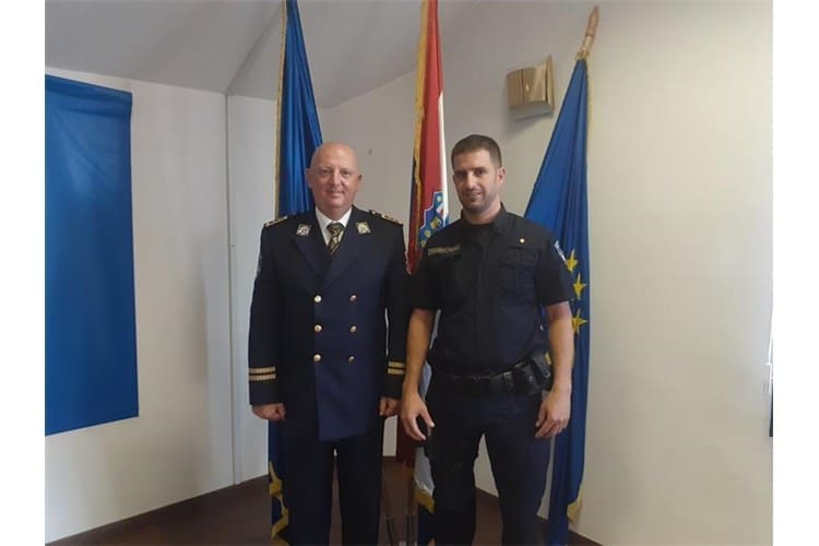 Za visoki plasman na prestižnom međunarodnom natjecanju za najspremnijeg policajca „Memorijal Šimo Đamić – Štit Domovine“ Petar Volarević iz Interventne jedinice policije Policijske uprave dubrovačko-neretvanske na poklon je dobio Vučedolsku golubicu.