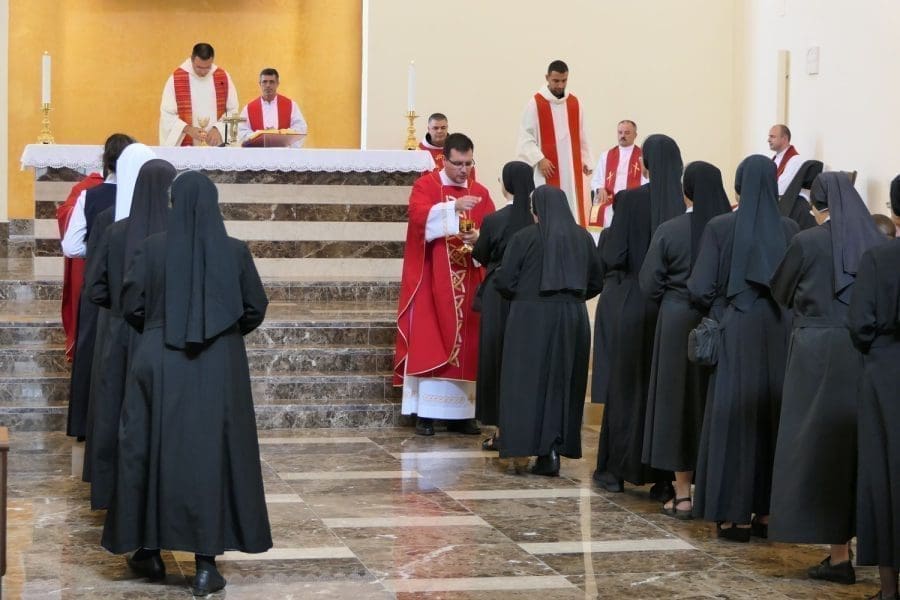 Na kraju svoje propovijedi poziva ih da budu prvi u izgradnji zajedništva. U tom je svjetlu naglasio da crkveni dokumenti pozivaju Bogu posvećene osobe na obnovu eklezijalne svijesti. „Vaša uloga u izgrađivanju tijela Kristova uvijek je u zajedništvu s hijerarhijom (usp. Mutuae relationes 14). Redovništvo bez Crkve nije ništa kao ni Crkva bez Krista. A vi ste njegova produžena ruka ako ste vjerni i ustrajni u vlastitom pozivu i poslanju vaših redovničkih zajednica. Molimo i danas za dar vjernosti u neprestanom sjećanju na Božja dobročinstva, za dar duboke molitve i Duha Svetoga koji neka vas osposobi za svako dobro djelo u ovoj našoj Crkvi i u Kristu Isusu.“