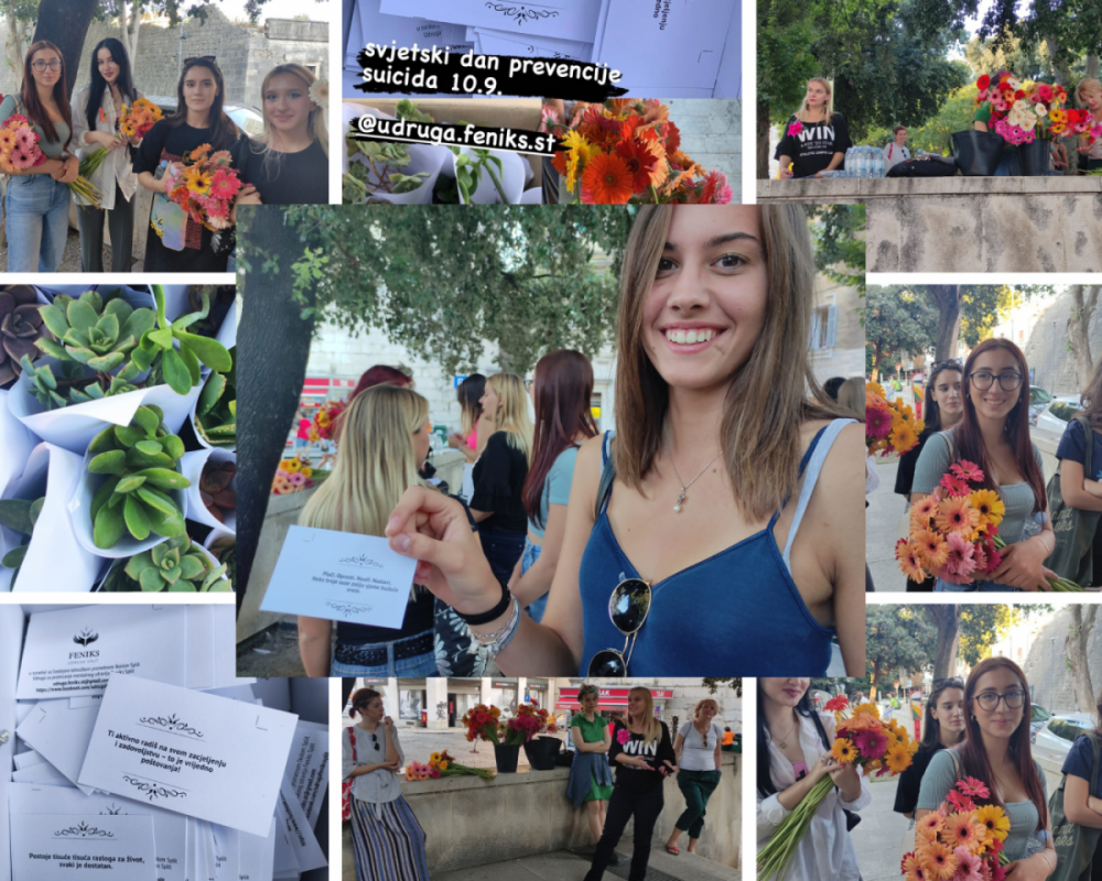 Danas je povodom Svjetskog dana prevencije suicida Udruga Feniks Split sugrađanima podijelila 566 cvjetova i osnažujućih poruka u spomen na isti broj osoba koje su tijekom prošle godine preminule počinivši suicid.