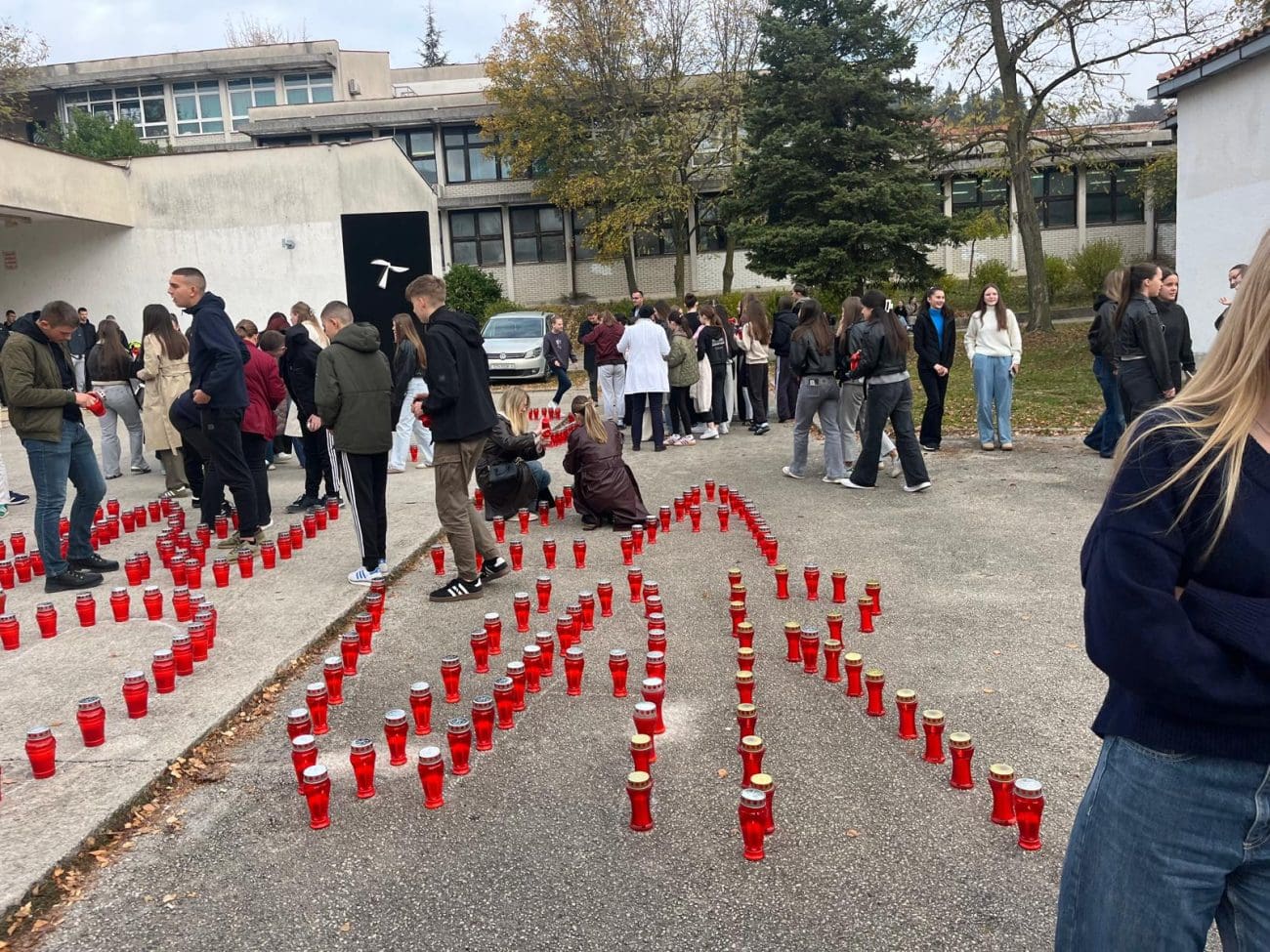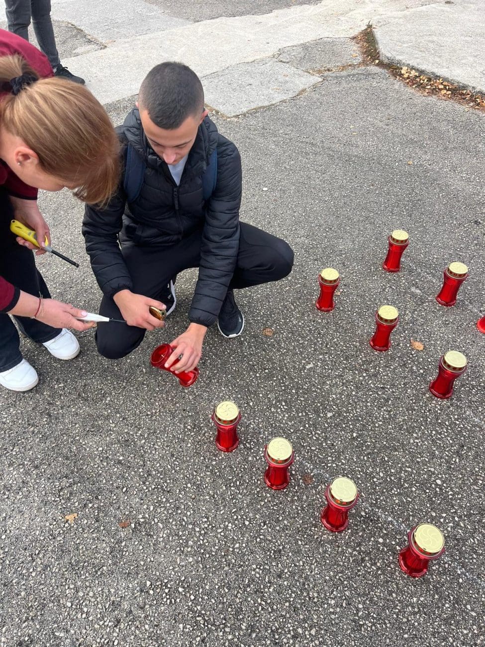 Ispred replike golubice bez glave, snažnog simbola stradanja, učenici su lampionima ispisali poruku “Sinj za Vukovar” te oblikovali srce kao znak zahvalnosti i trajnog sjećanja.