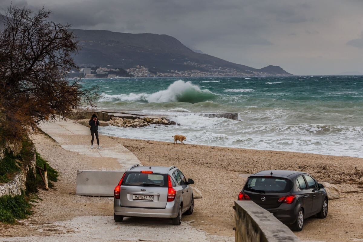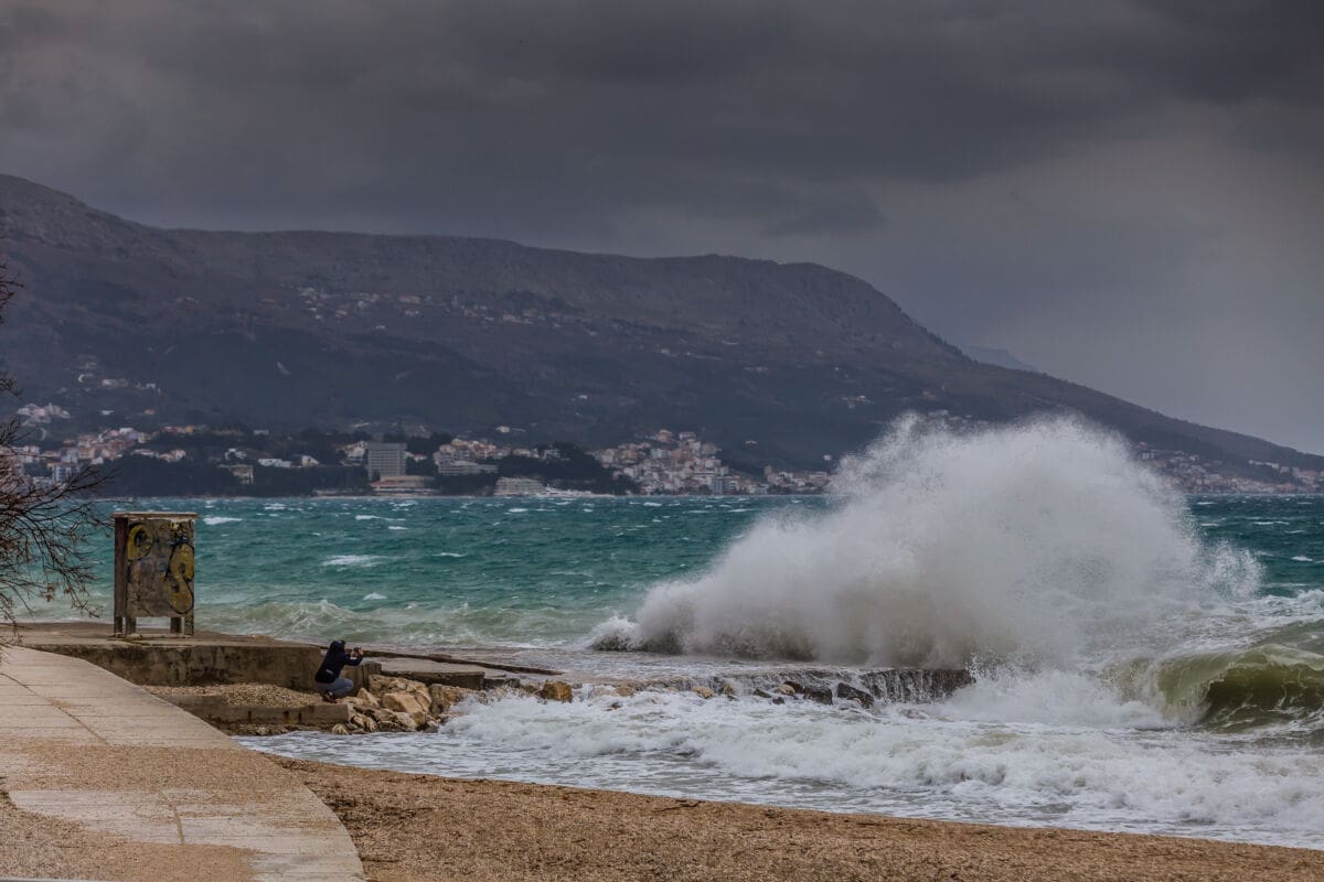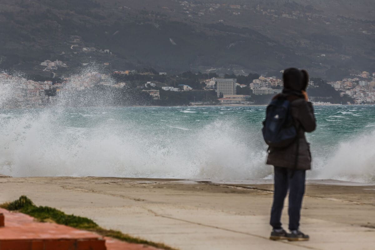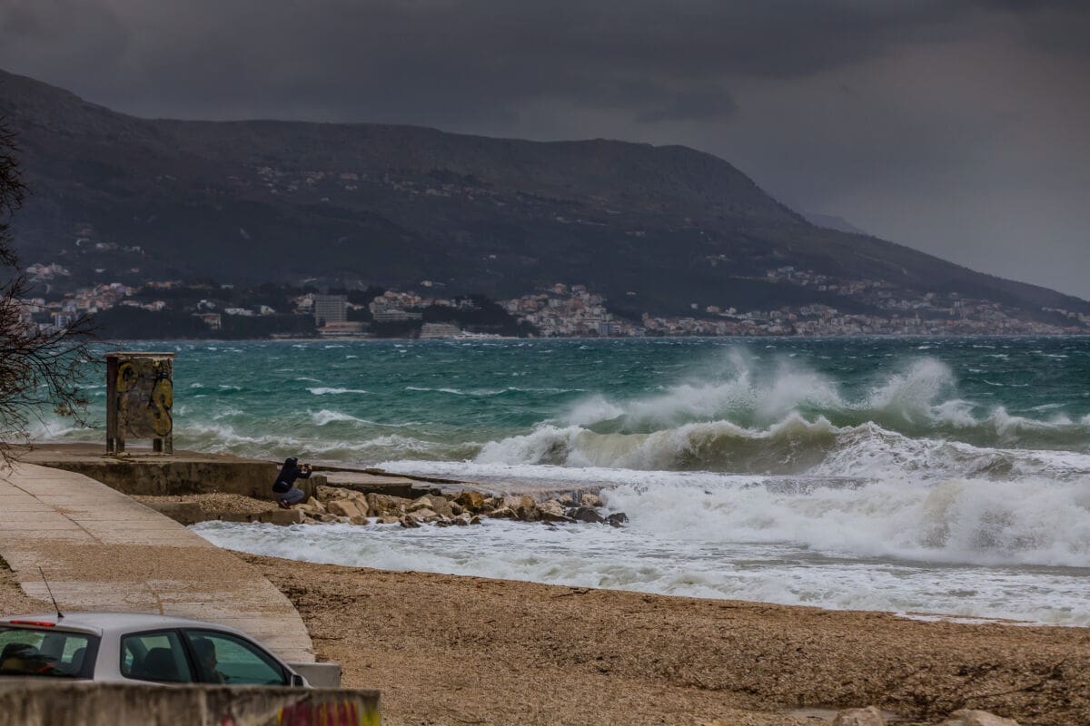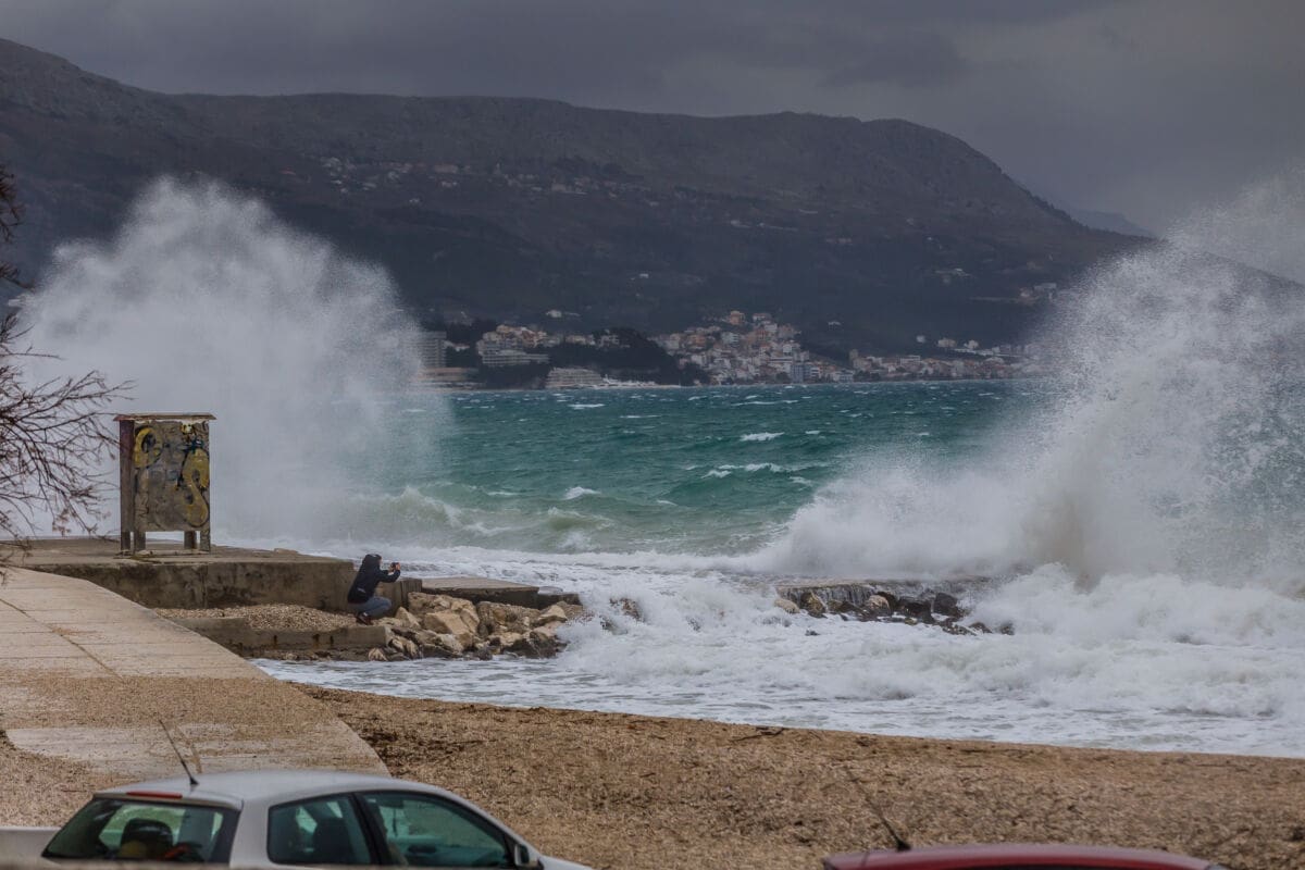 U Splitu je jugo imalo olujne udare do 94 km/h, a u Zadru do 90 km/h. Valovito more izaziva poremećaje u pomorskom prometu.