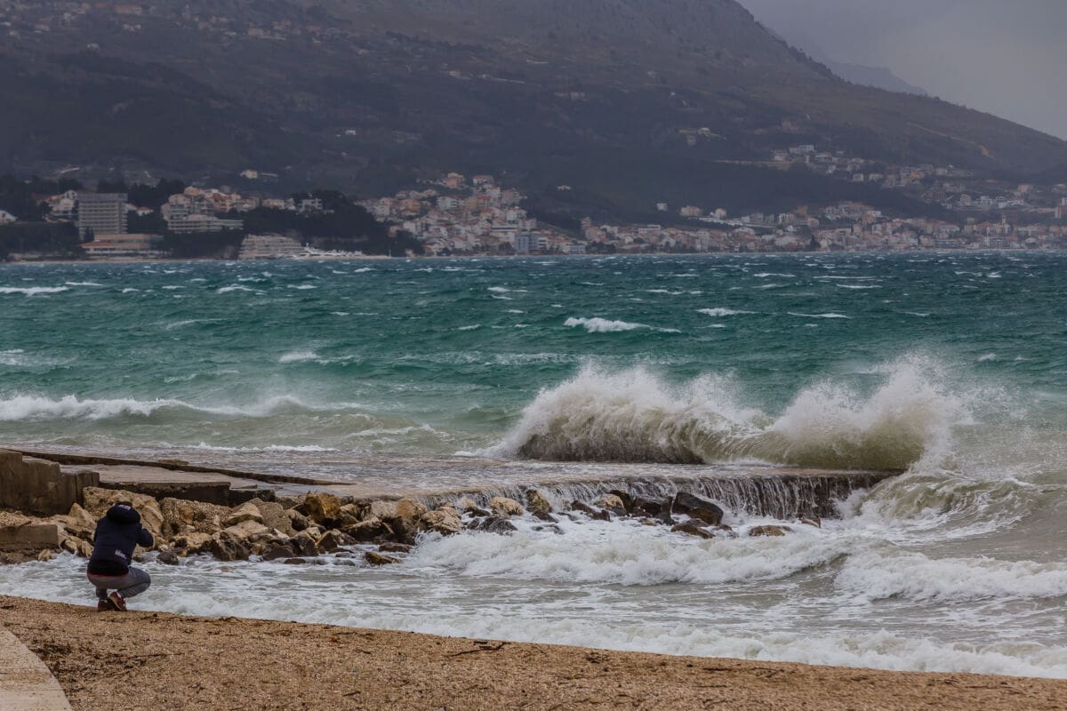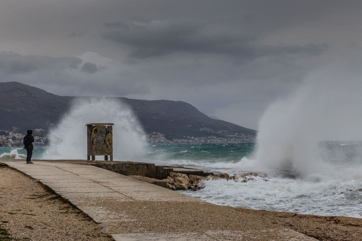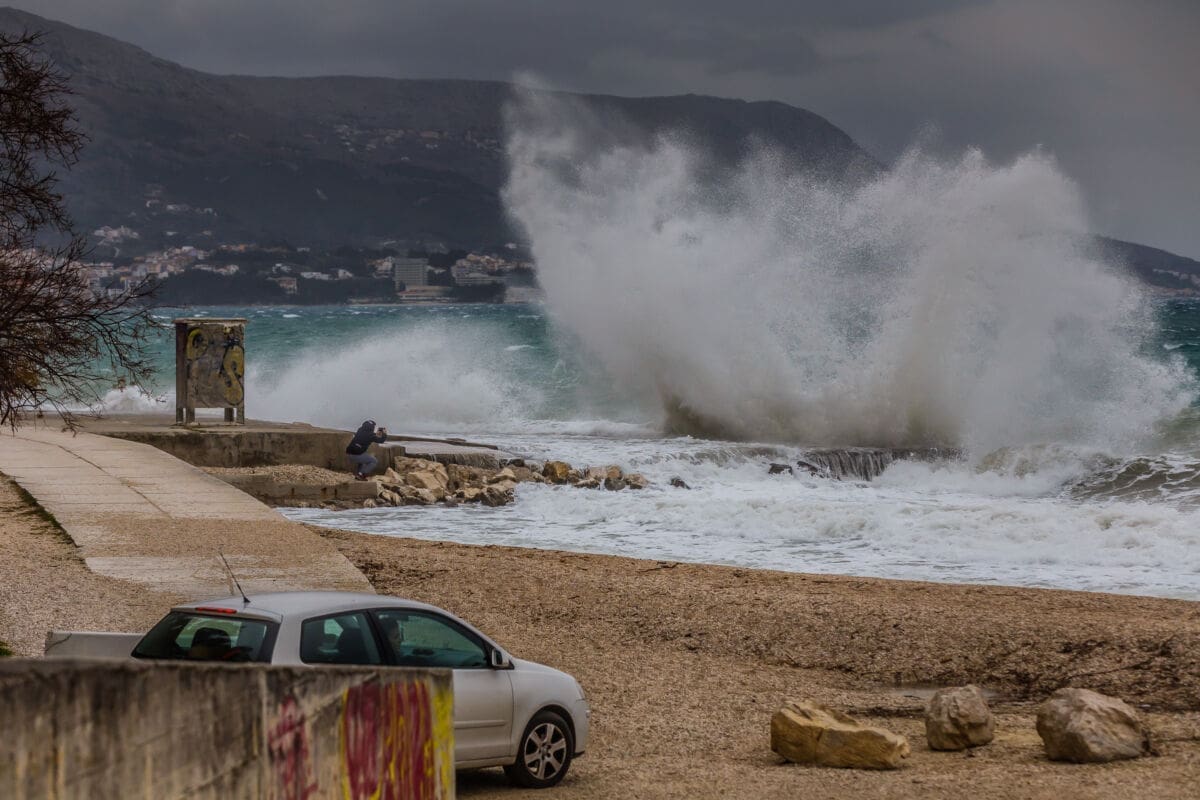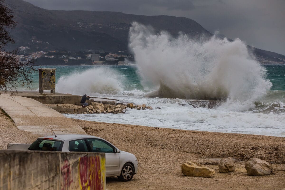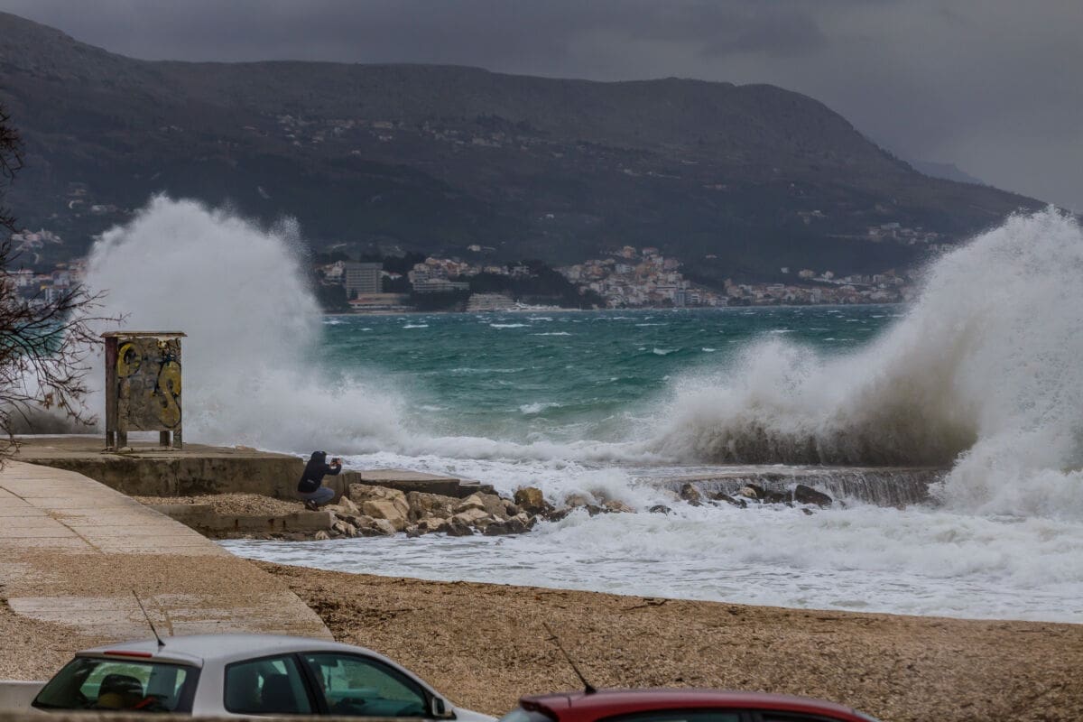 U Splitu je jugo imalo olujne udare do 94 km/h, a u Zadru do 90 km/h. Valovito more izaziva poremećaje u pomorskom prometu.