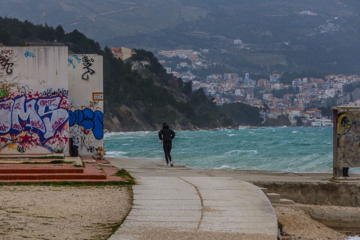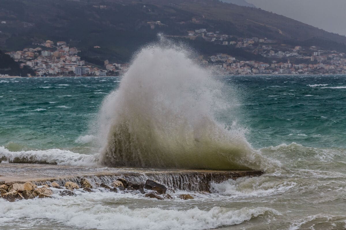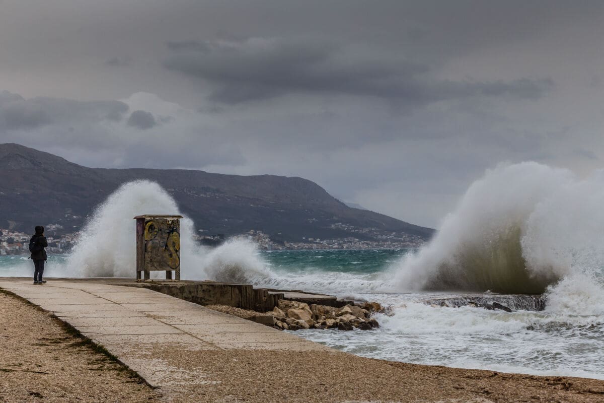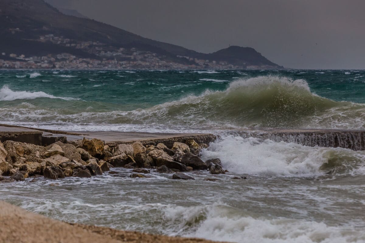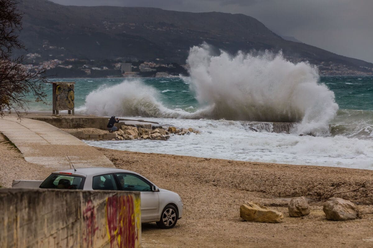 U Splitu je jugo imalo olujne udare do 94 km/h, a u Zadru do 90 km/h. Valovito more izaziva poremećaje u pomorskom prometu.