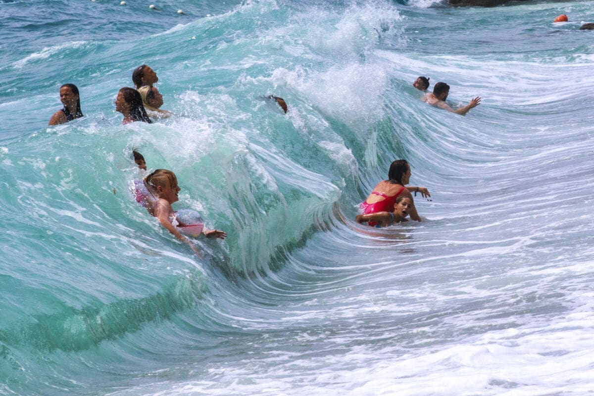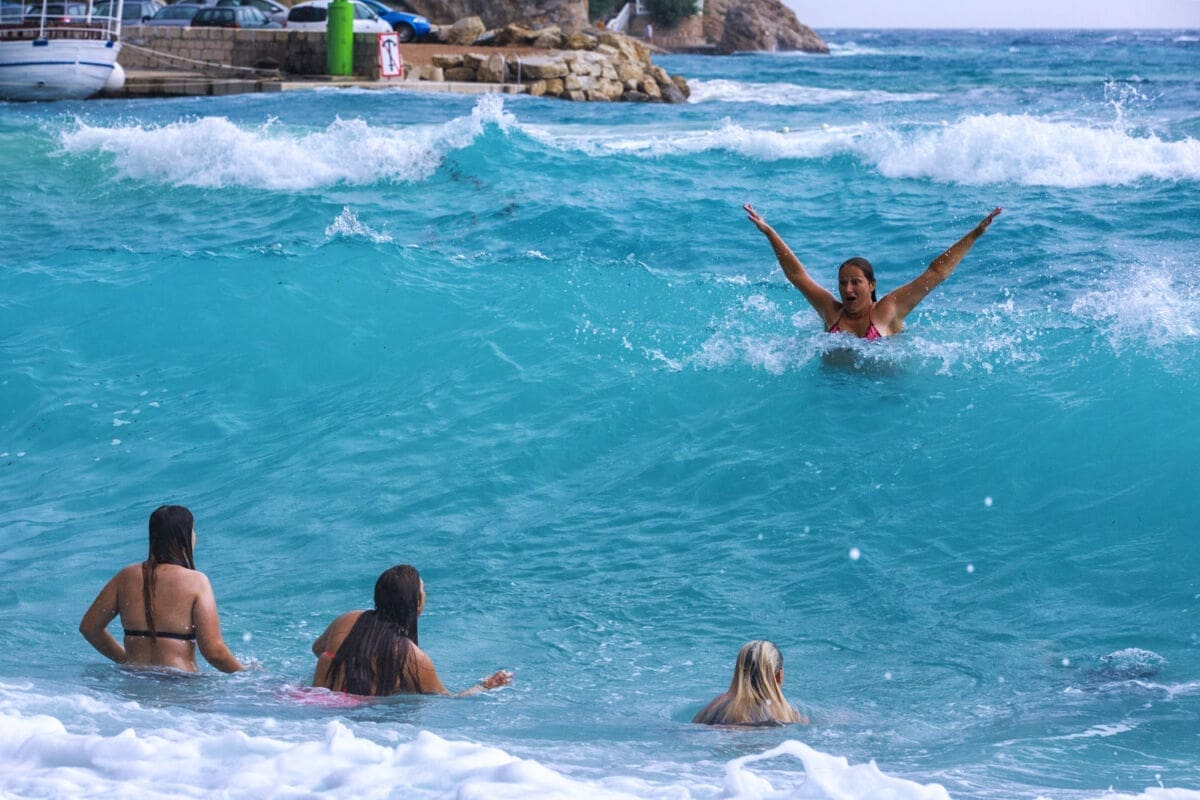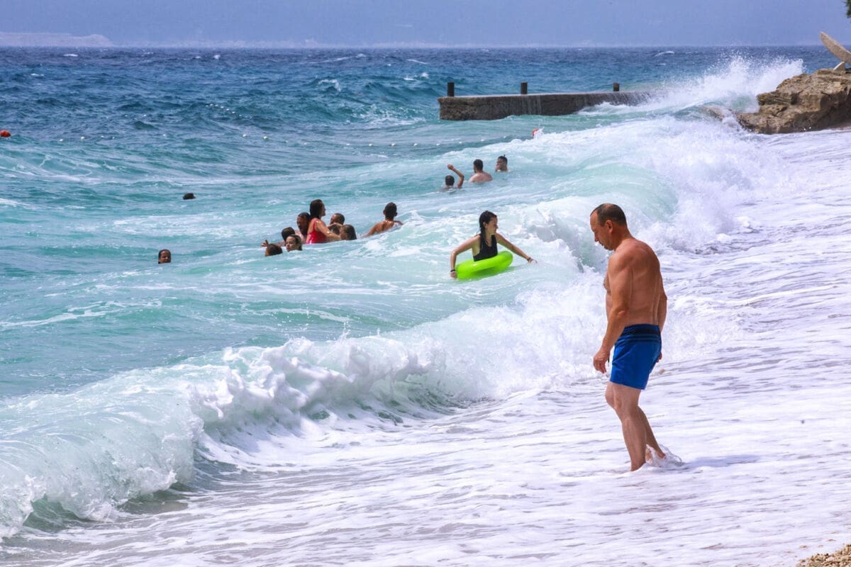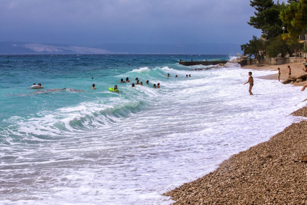 More je i dalje toplo pa su mu površinske temperature većinom od 24 do 26°C. Tamo gdje u Dalmaciji nije bilo izraženog nevremena plaže su bile pune, bez obzira na snažno jugo. Jugo je diglo visoke valove, ali ne tolike da bi spriječili pravu zabavu na plaži.