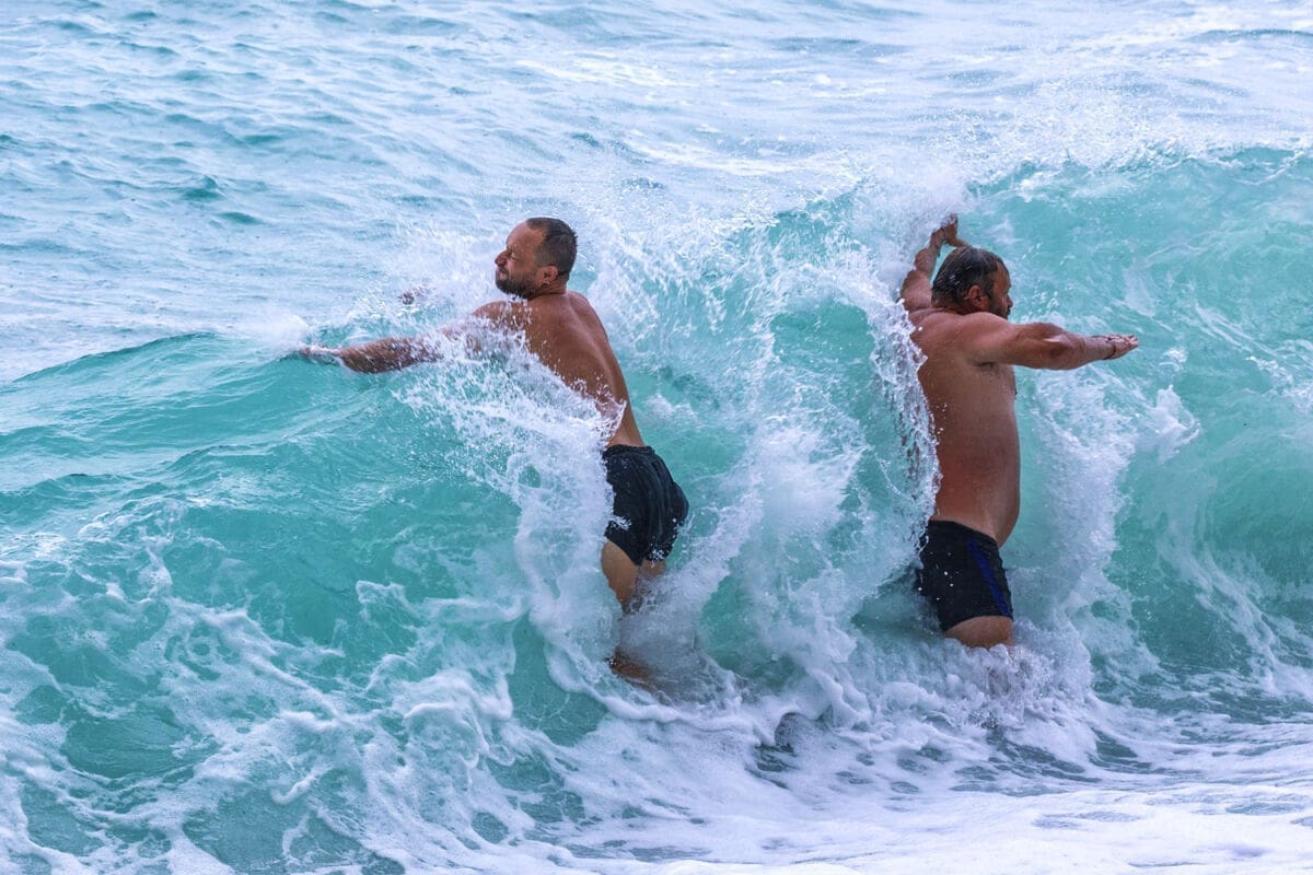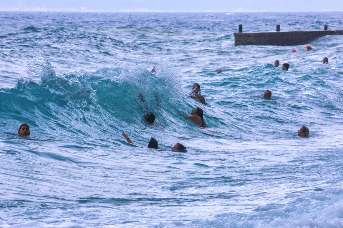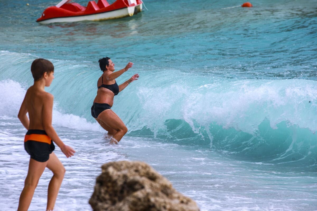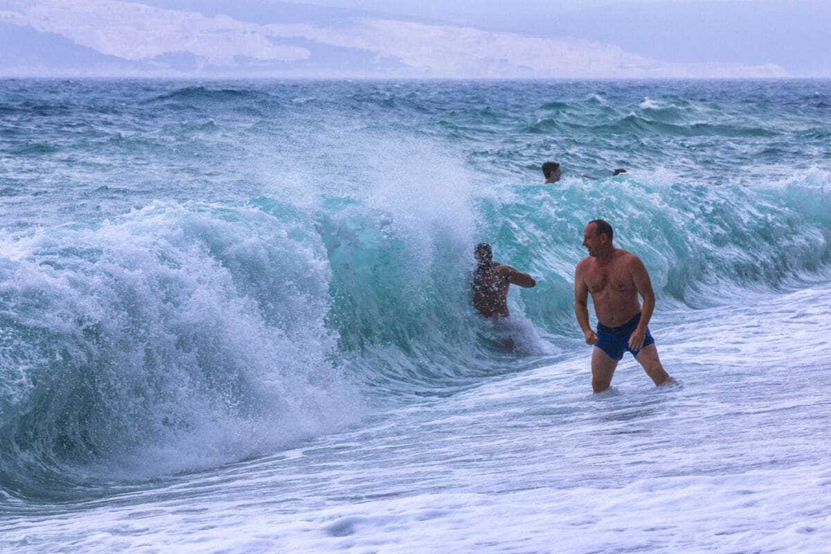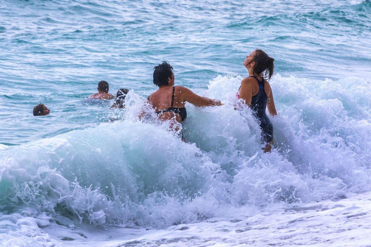 More je i dalje toplo pa su mu površinske temperature većinom od 24 do 26°C. Tamo gdje u Dalmaciji nije bilo izraženog nevremena plaže su bile pune, bez obzira na snažno jugo. Jugo je diglo visoke valove, ali ne tolike da bi spriječili pravu zabavu na plaži.