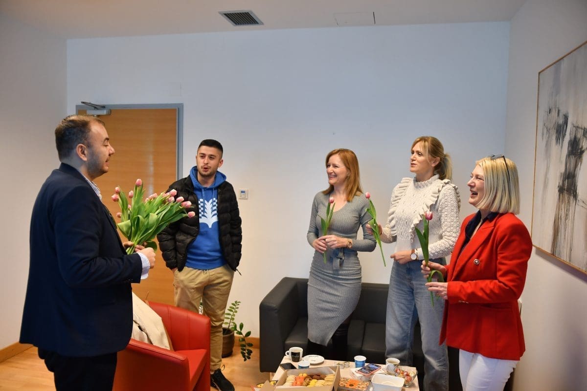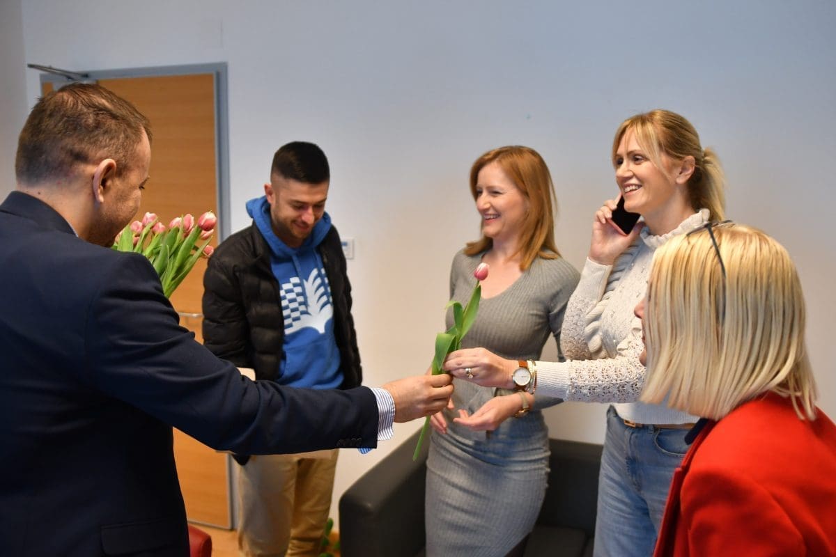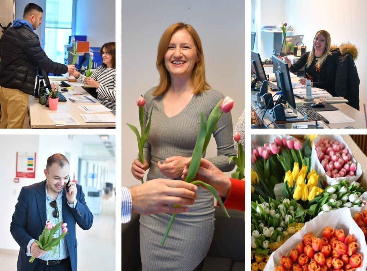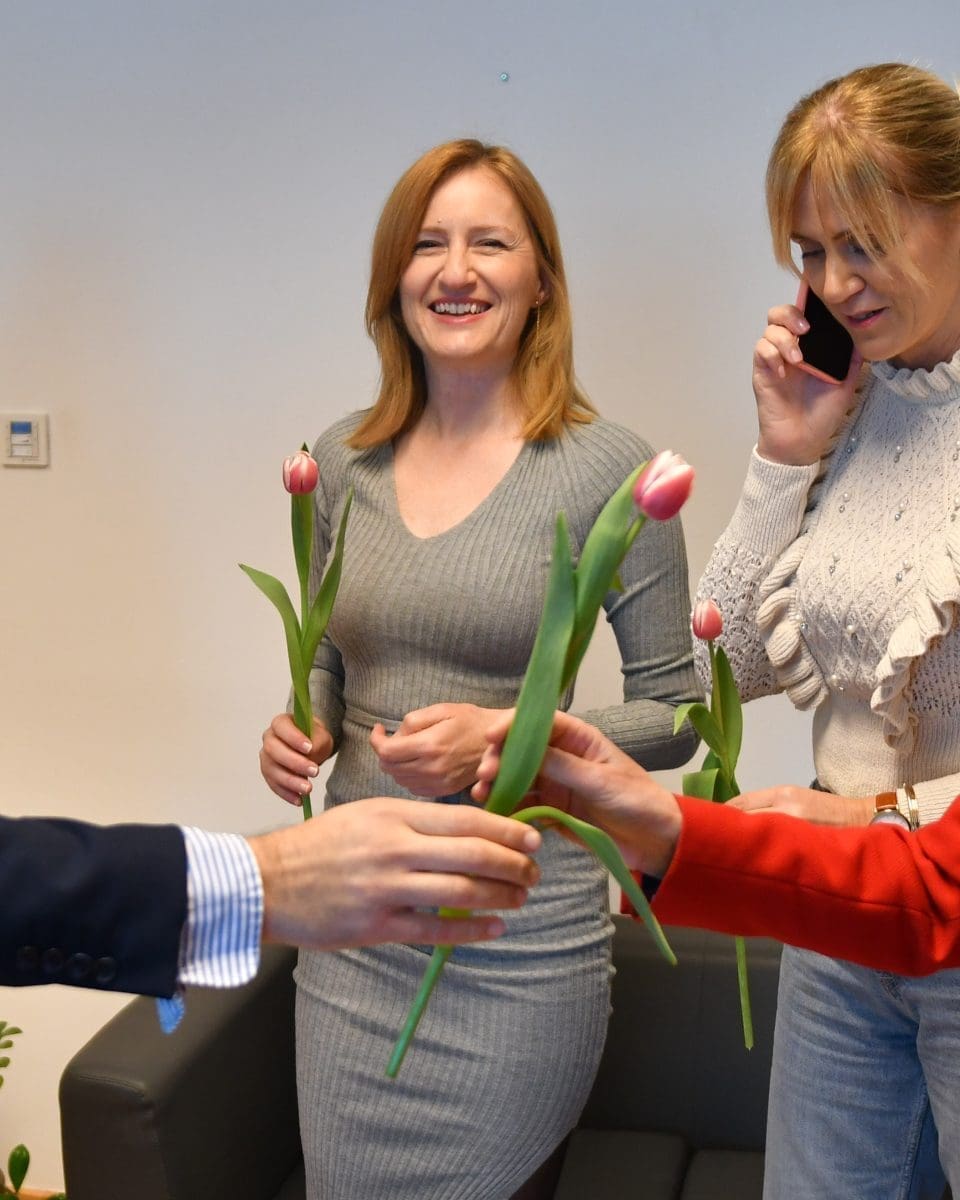 Članovi Studentskog zbora Sveučilišta u Splitu, na čelu s predsjednikom Jerkom Šarićem, njegovim zamjenikom Vladimirom Ercegovićem i predstavnicima studenata ostalih sastavnica splitskog sveučilišta s upravom Sveučilišta u Splitu i Studentskog centra Split u prisustvu prorektora za nastavu, studente i poslovanje, Nikole Koceića-Bilana, šarenim su tulipanima svim ženama sveučilišta koje svojom snagom i osjećajima čine život boljim i ljepšim mjestom zahvalili i uputili iskrene čestitke za njihov dan te im izmamili osmijeh od uha do uha na licu.