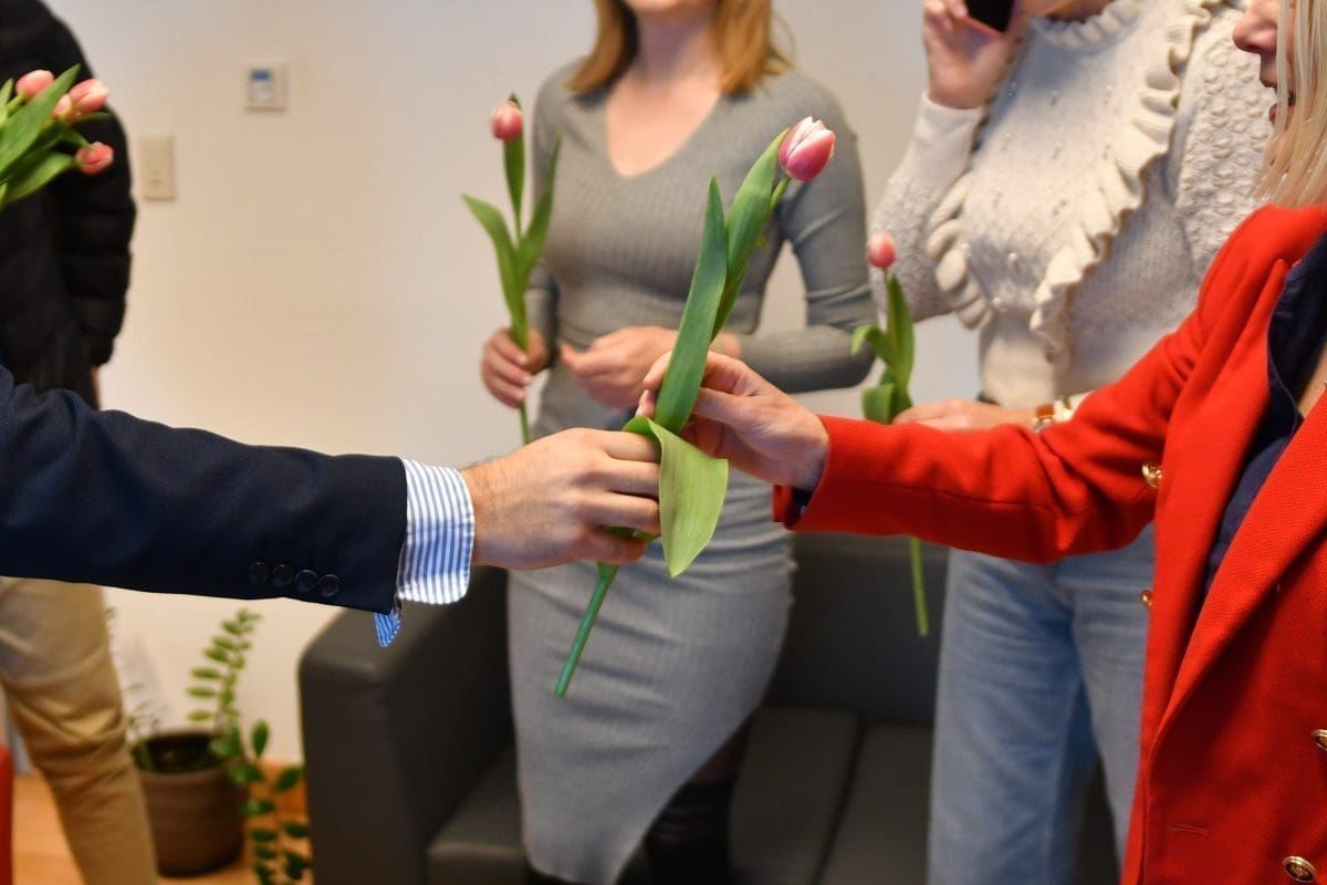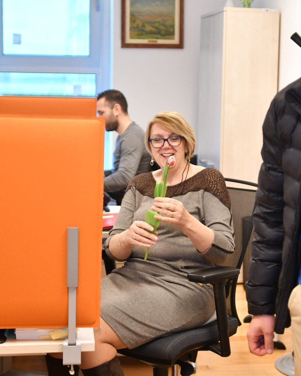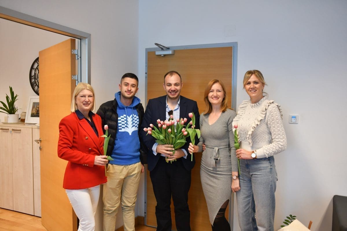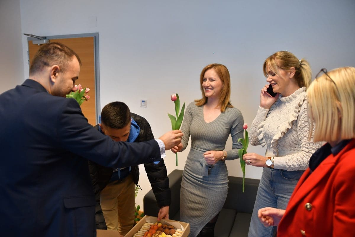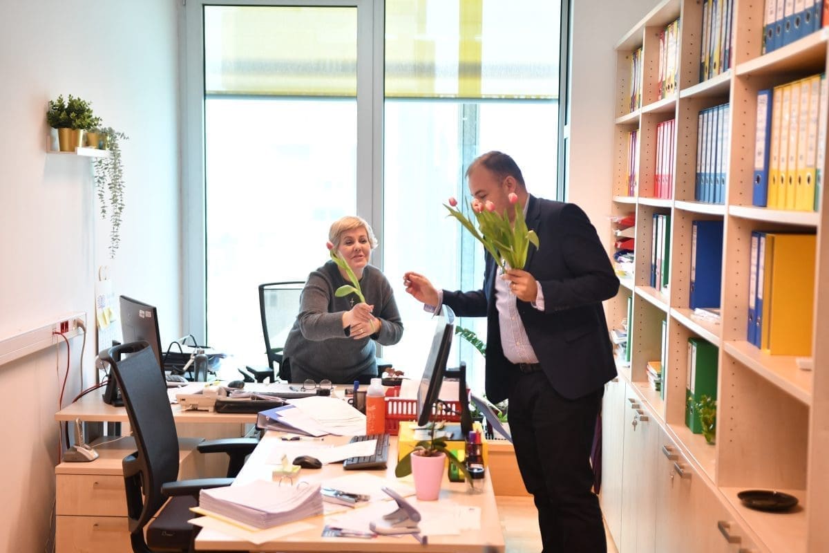 Članovi Studentskog zbora Sveučilišta u Splitu, na čelu s predsjednikom Jerkom Šarićem, njegovim zamjenikom Vladimirom Ercegovićem i predstavnicima studenata ostalih sastavnica splitskog sveučilišta s upravom Sveučilišta u Splitu i Studentskog centra Split u prisustvu prorektora za nastavu, studente i poslovanje, Nikole Koceića-Bilana, šarenim su tulipanima svim ženama sveučilišta koje svojom snagom i osjećajima čine život boljim i ljepšim mjestom zahvalili i uputili iskrene čestitke za njihov dan te im izmamili osmijeh od uha do uha na licu.