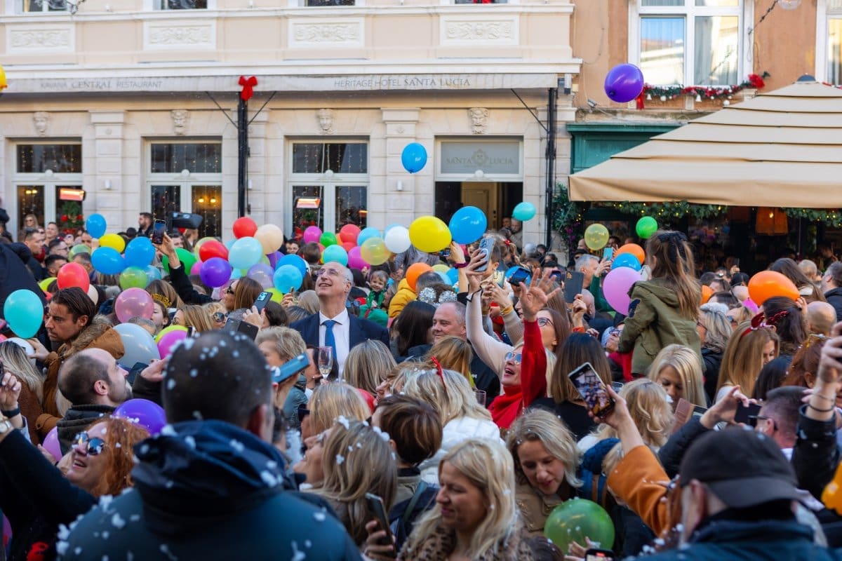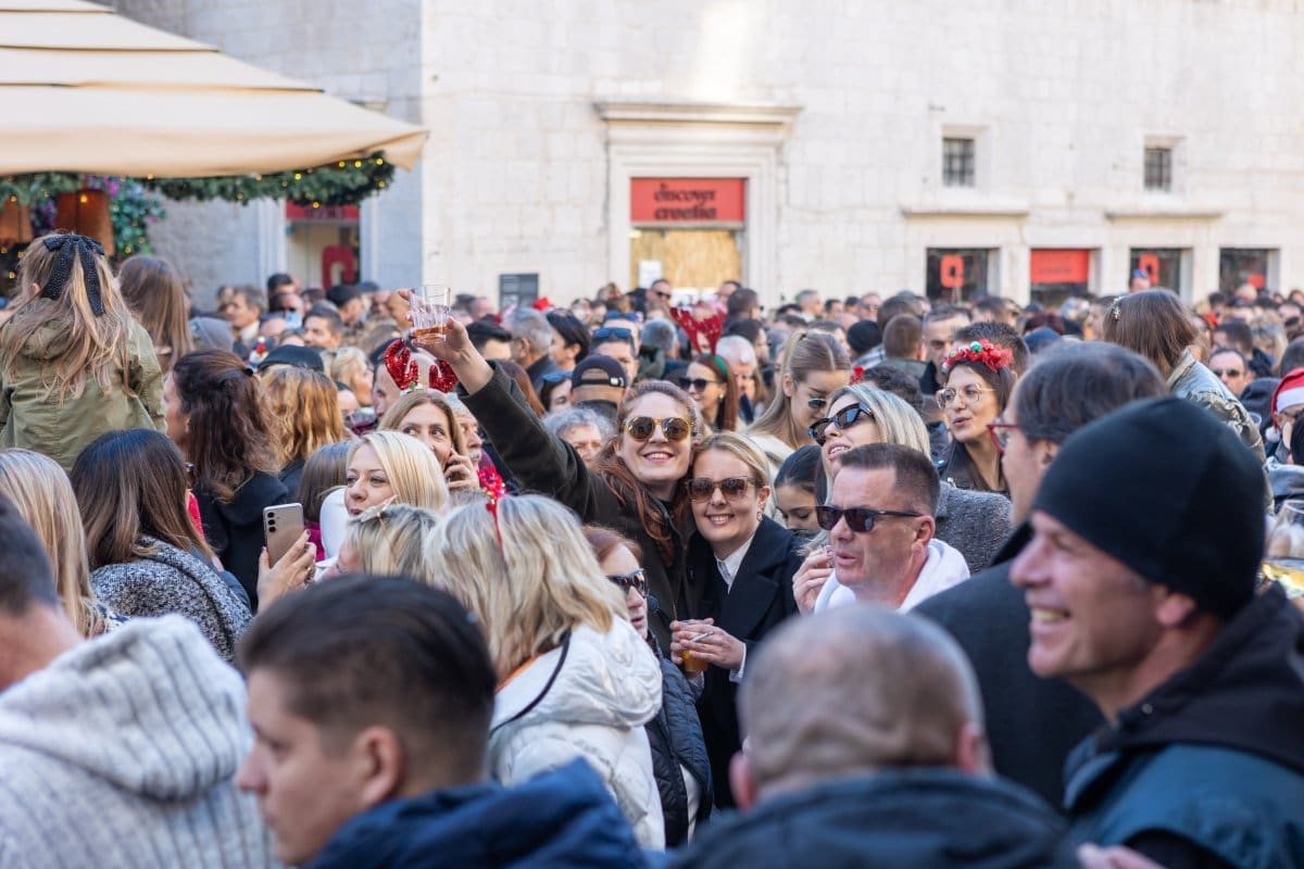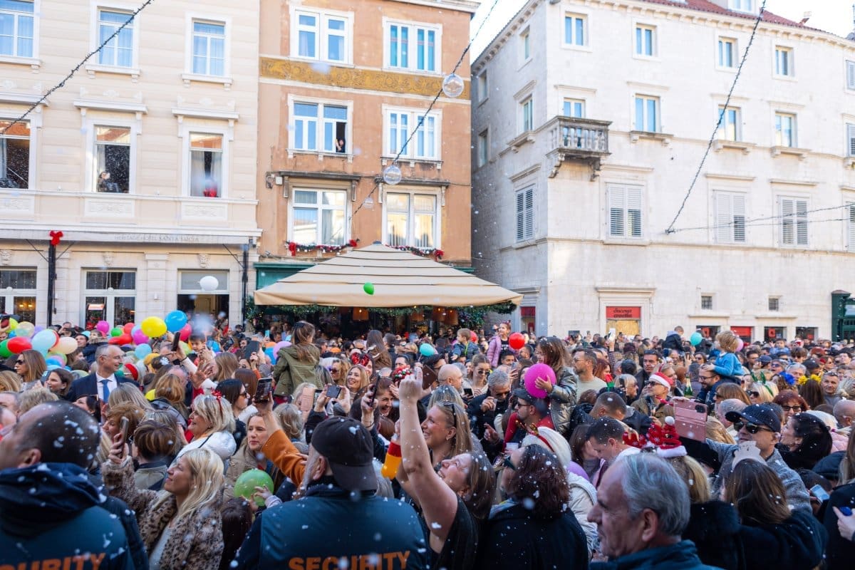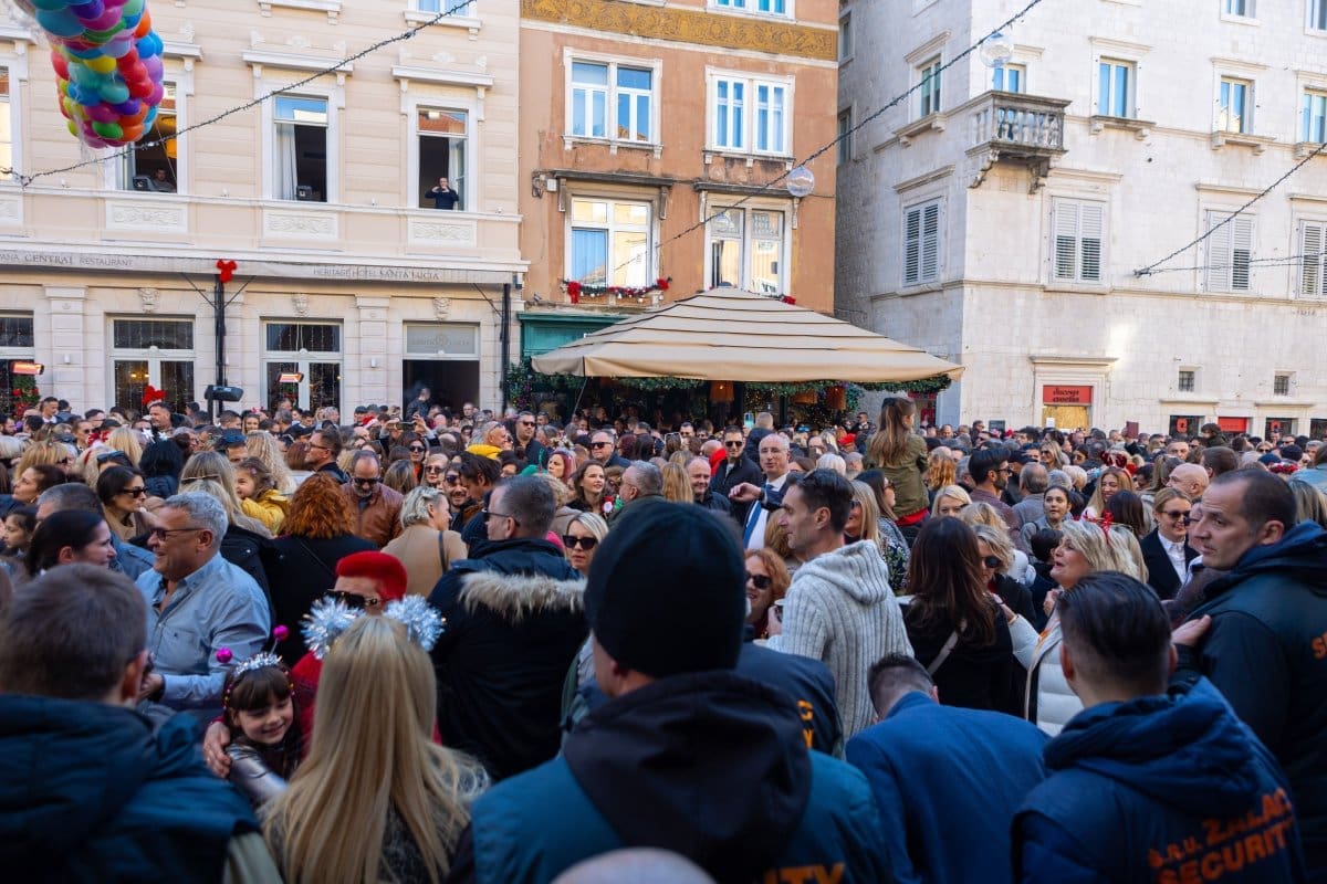 "Od Prokurativa do Rive mi je trebalo 15 minuta’, rekla je u prolazu jedna Splićanka s osmjehom na licu! Tako to i inače biva u Splitu na Staru godinu, kada je tradicionalno jezgra grada puna ljudi koji si čestitaju, pozdravljaju doma i grle i ljube, a danas je to bilo kao nikad dosad!