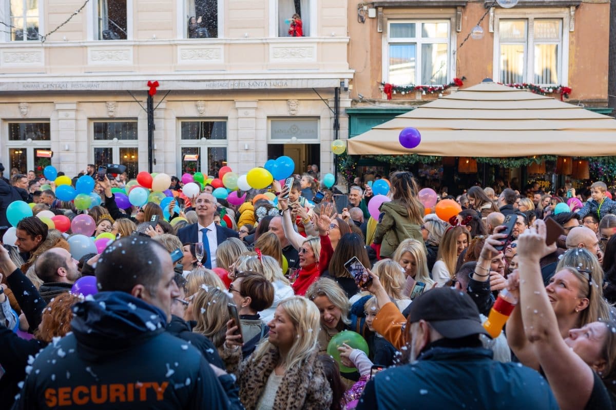 Na Prokurativama su atmosferu pratili Marino Jakobić i DJ Giovanni , a onda se cijeli grad prebacio na Pjacu na Dnevni doček Nove godine u iščekivanju odbrojavanja u 15.00h, gdje se guštalo uz glazbenu poslasticu za sve generacije uz PMS (Premium Music Selectors), TJ Cico (Balinjera) & Zrine_Flashback Party Music As It Once Was.