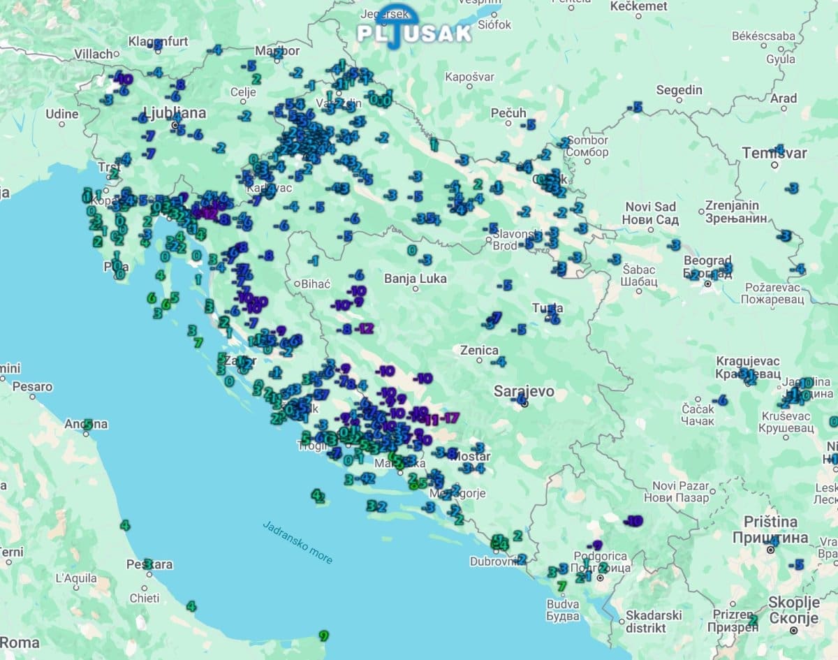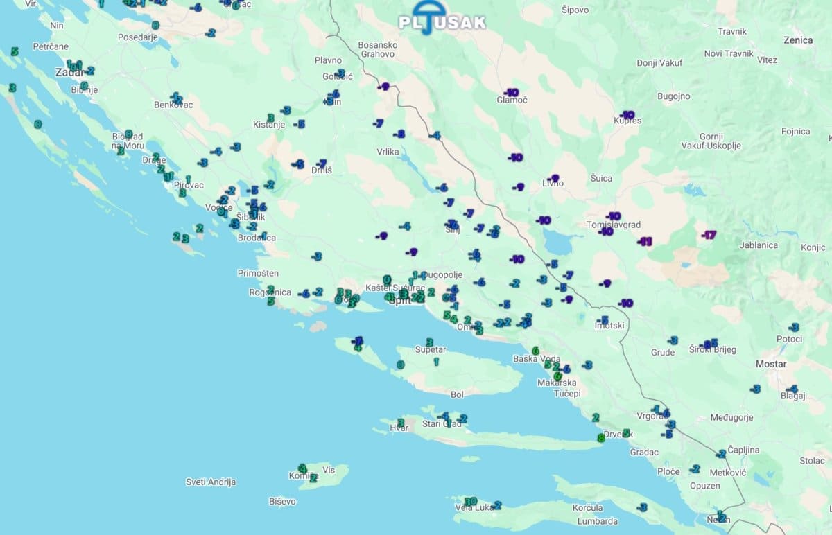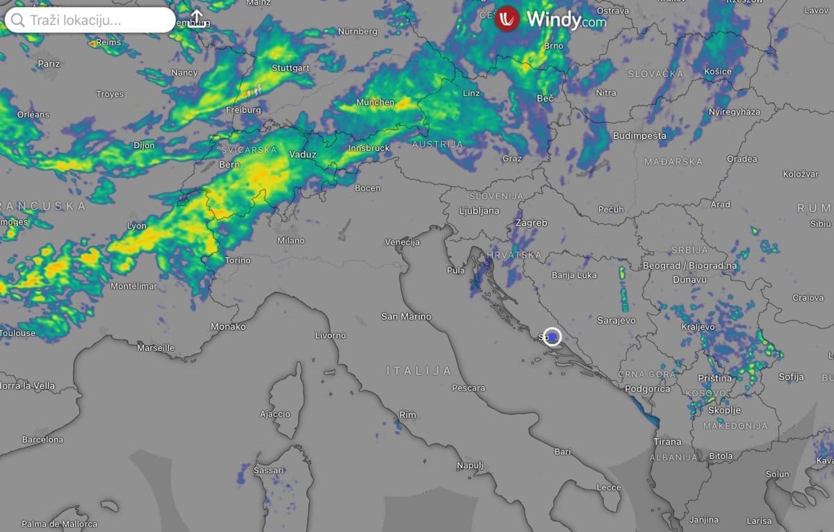 Sunčano jutro nije odavalo dojam velike promjene vremena, ali promjena stiže. U drugom dijelu dana očekuje nas naoblačenje, a navečer će početi kiša, u višim predjelima Dalmacije i snijeg. Zapuhat će jako, a navečer jugo s olujnim udarima. Bit će to uvod u snažnu sredozemnu ciklonu koja će djelovati na vrijeme u cijeloj zemlji u ponedjeljak.