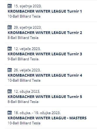 Rezultate možete pogledati na sljedećem linku: https://cuescore.com/tournament/Tesla+AMATERSKA+LIGA+-+MASTERS/19794316?schedule#schedule