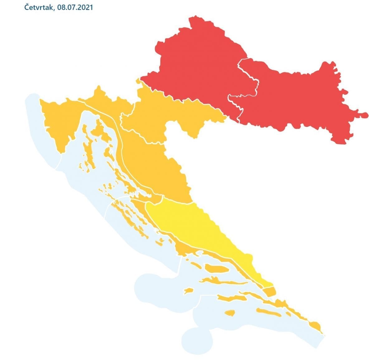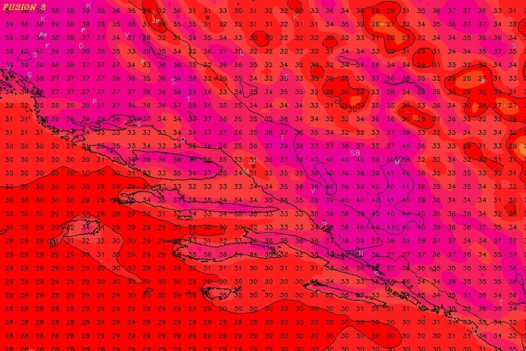Vrhunac novog toplinskog vala vjerojatno će se dogoditi u četvrtak. Bit će pretežno sunčano i suho. Noću tiho ili burin, danju će puhati uglavnom slab maestral, ali popodne prolazno na moru može biti umjerenog, među otocima i pojačanog zapadnog i sjeverozapadnog vjetra. Od jutra natprosječno toplo, danju vruće i vrlo vruće s najvišim dnevnim temperaturama od 33 do čak 40°C.