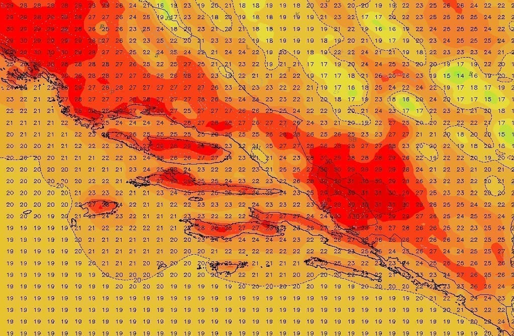 Danas nas očekuje pretežno vedro vrijeme. Danju će puhati slab maestral, a kasno popodne među otocima može biti umjerenog zapadnjaka. Navečer tiho ili slaba bura. Bit će vrlo toplo i vruće s najvišim dnevnim temperaturama od 23 do 30°C.