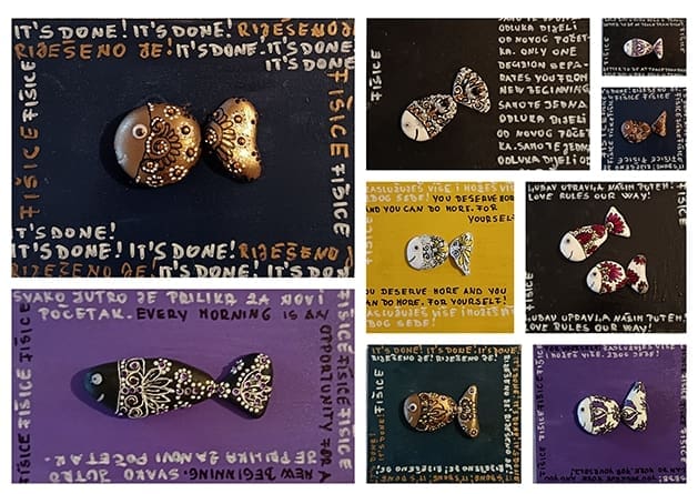 "Fišice" su nastale spontano, kao kreativni odgovor na izazove pandemije. Izrađujući ove neobične kamenčiće, autorica je pružala podršku i inspiraciju prijateljima, što je s vremenom preraslo u umjetnički projekt s univerzalnom porukom – u svakom trenutku dobro je imati svoju simboličnu zlatnu ribicu koja donosi ohrabrenje.