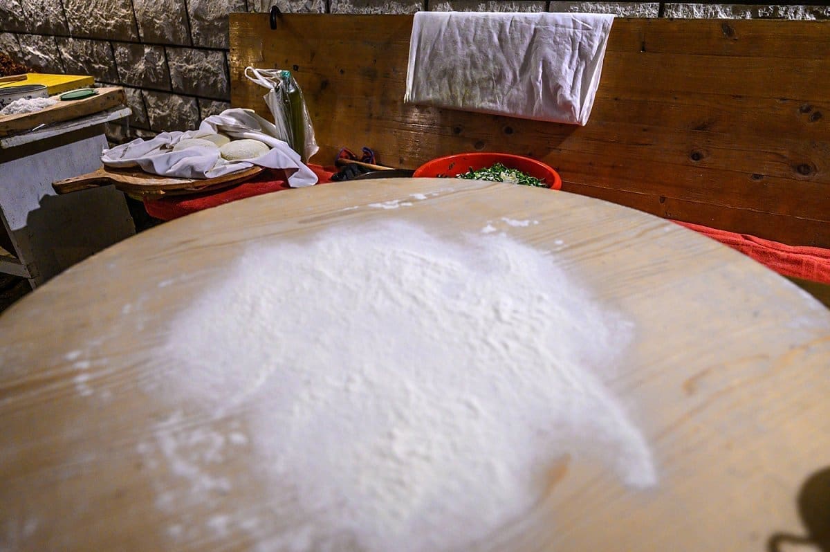 - Nakon što se dobro naloži vatra mijesi se tijesto. Količina tijesta ovisi o broju soparnika koje želimo napraviti. Za jedan soparnik treba nam od 1 do 1,5 kg brašna. Ja najčešće koristim Podravkino glatko brašno. Uz to treba nam dodatno brašna za posipanje soparnika.