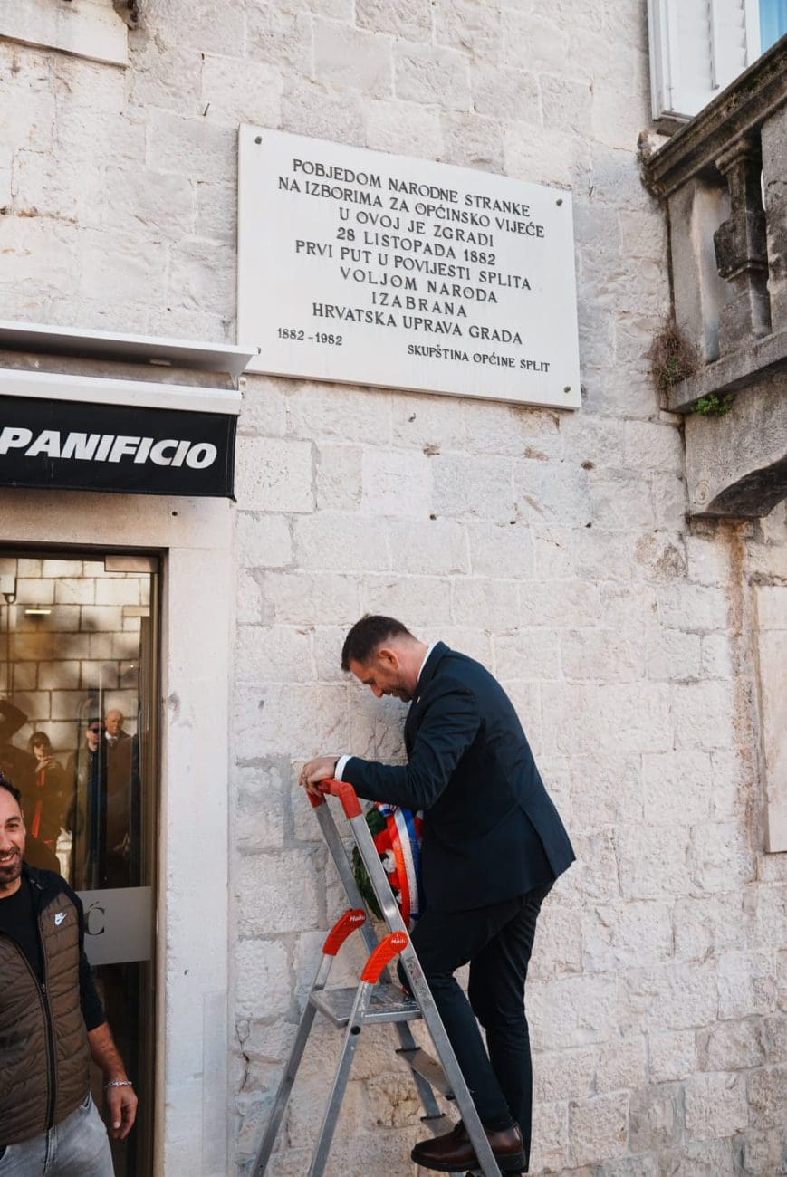 "Danas smo ovdje u samom centru grada, obilježavamo 143. obljetnicu pobjede narodnjaka u gradu Splitu. Pobjeda je pokazala pohrvaćenje splitske Općine i osigurala novi iskorak u razvoju Splita. Split je postao glavni grad Dalmacije nakon niza godina i doživio gospodarski i urbani razvoj... Danas živimo kao slobodan grad, grad koji bilježi razvoj i želim iskoristiti priliku i zahvaliti se svim gradonačelnicima iz vremena narodnjaka, koji su pokazali velik iskorak u izgradnji HNK, Hrvatskog doma i niza drugih institucija u gradu Splitu koje nam danas i služe", kazao je ovom prigodom splitski gradonačelnik.
