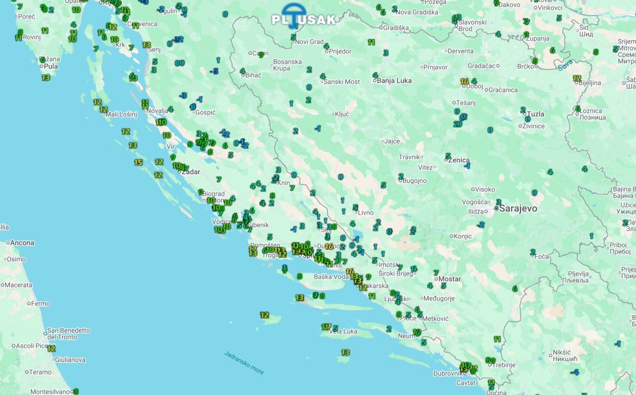 Velik dio obale i otoka bio je izuzet posebne hladnoće pa su tamo jutrošnje minimalne temperature zraka bile dvoznamenkaste, ponegdje i do 16 stupnjeva.