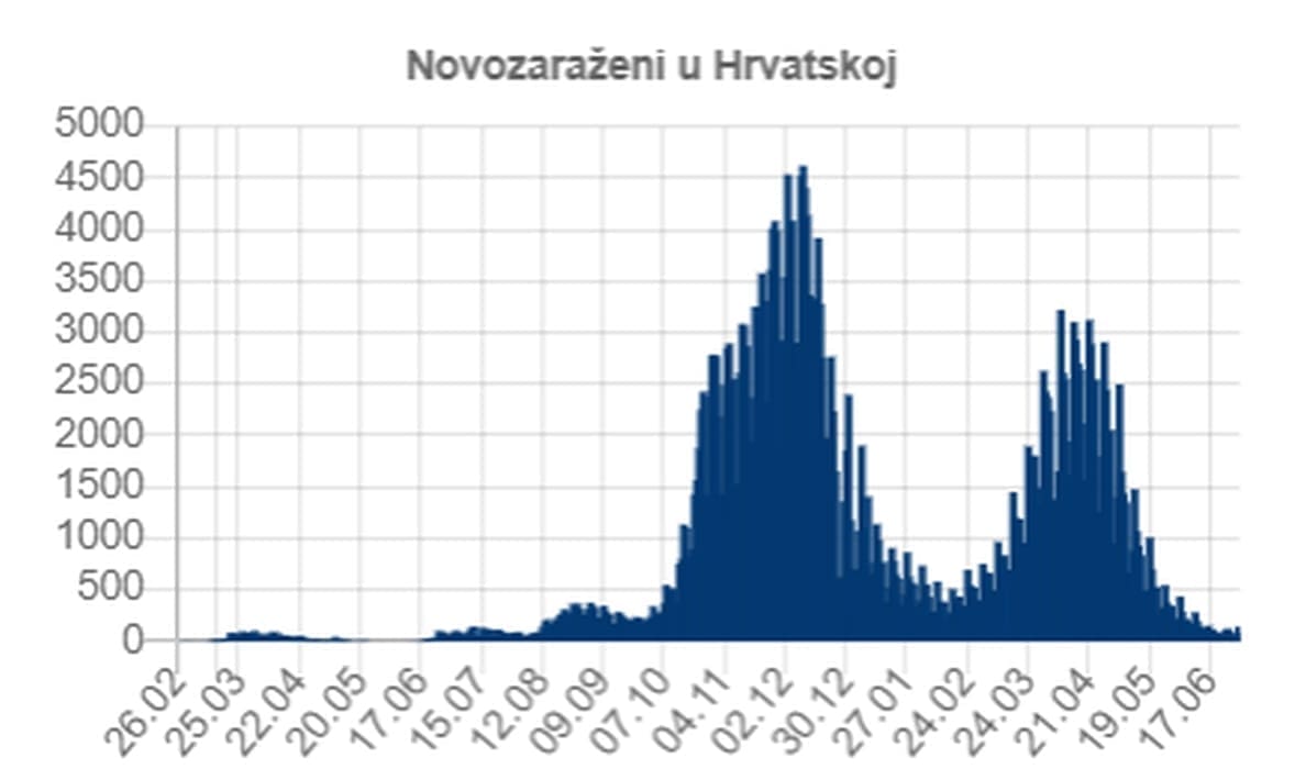 Od 25. veljače 2020., kada je zabilježen prvi slučaj zaraze u Hrvatskoj, do danas ukupno su zabilježene 359.872 osobe zaražene novim koronavirusom, od kojih je 8206 preminulo. Ukupno se oporavilo 351.170 osoba, od toga 57 u posljednja 24 sata.