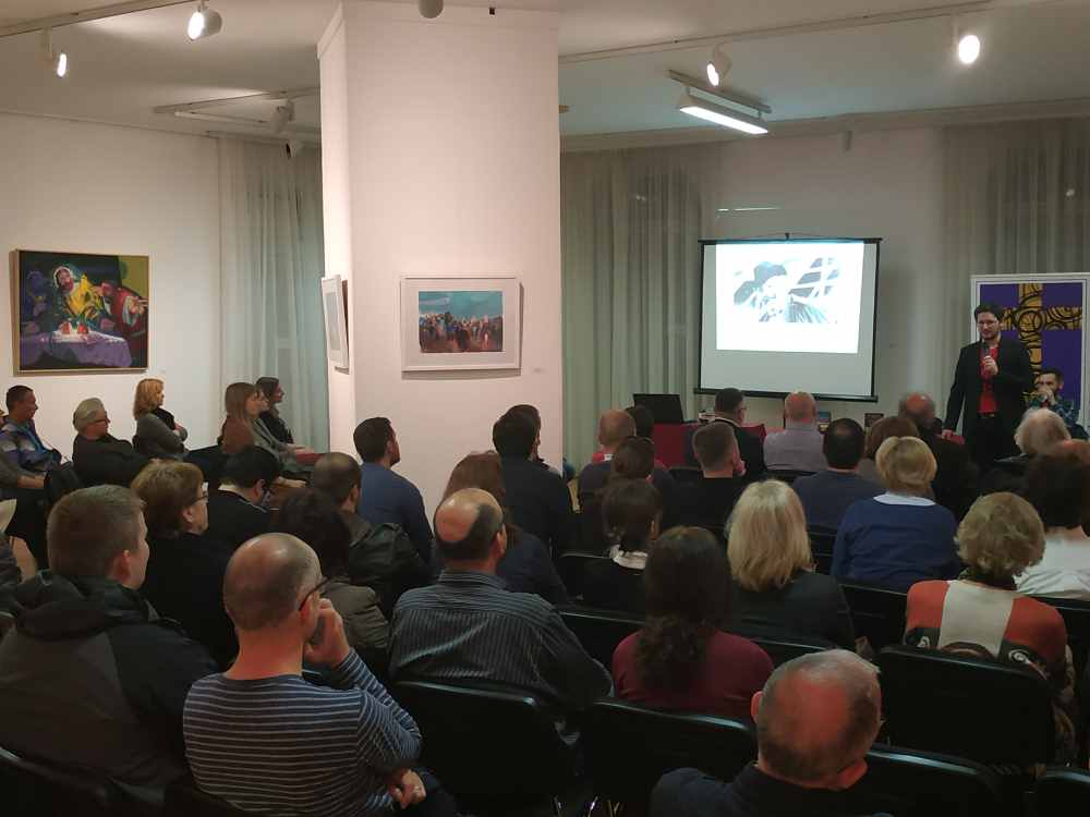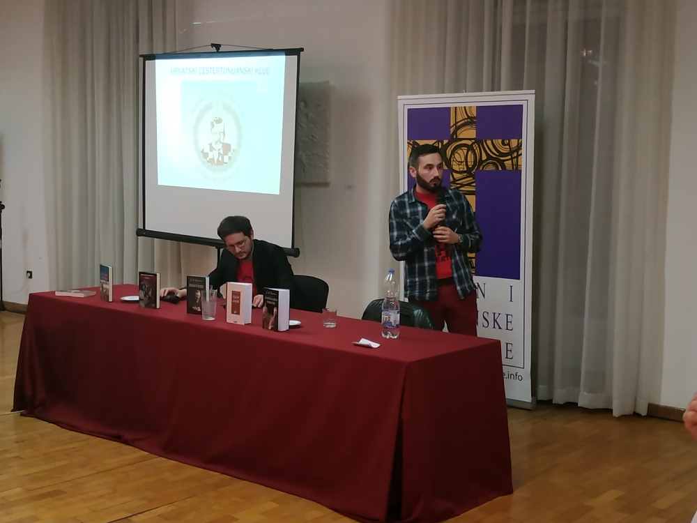 Gosti večernjeg programa u 20 sati u palači Milesi bili su Nikola Bolšec i Ivo Džeba, predsjednik i potpredsjednik Hrvatskog čestertonijanskog kluba posvećenog promicanju lika i djela Gilberta Keitha Chestertona, slavnog engleskog obraćenika i jednog od najzanimljivijih i najutjecajnijih katoličkih pisaca 20. stoljeća.