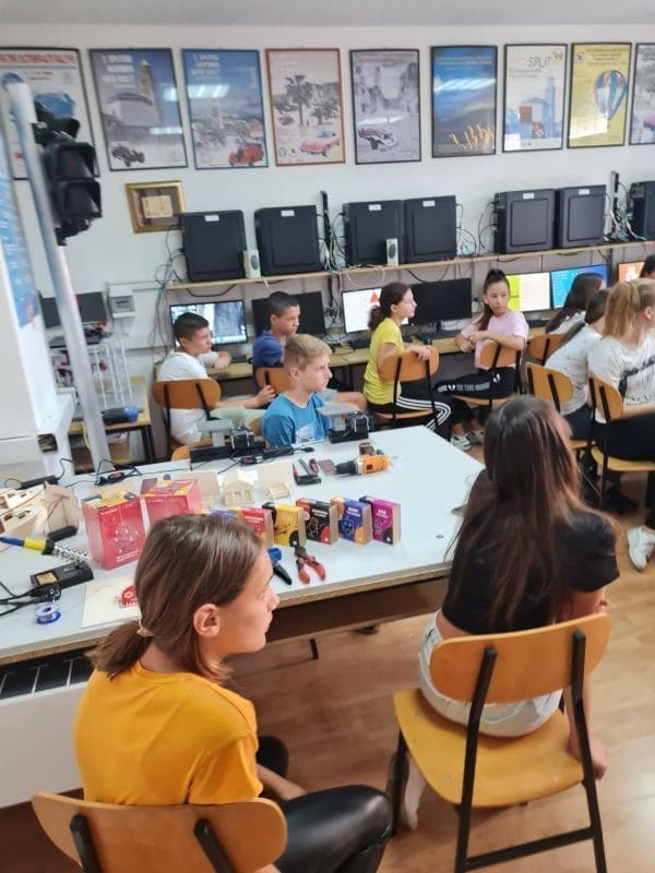 Nedugo nakon završetka radionice robotike, na radionicu elektrotehnike i elektronike stigla nam je vrtićka skupina Potočnica 1 iz dječjeg vrtića Marjan. Zajedno sa svojim odgajateljicama, Anom Lazarević i Ivanom Baričević, djeca su povezivala elektroničke elemente na tiskane pločice u obliku različitih robota. Radionici je prisustvovalo osamnaestero djece, te su svi uspjeli samostalno postaviti elemente na pločice i na taj način izraditi vlastite male robote.
