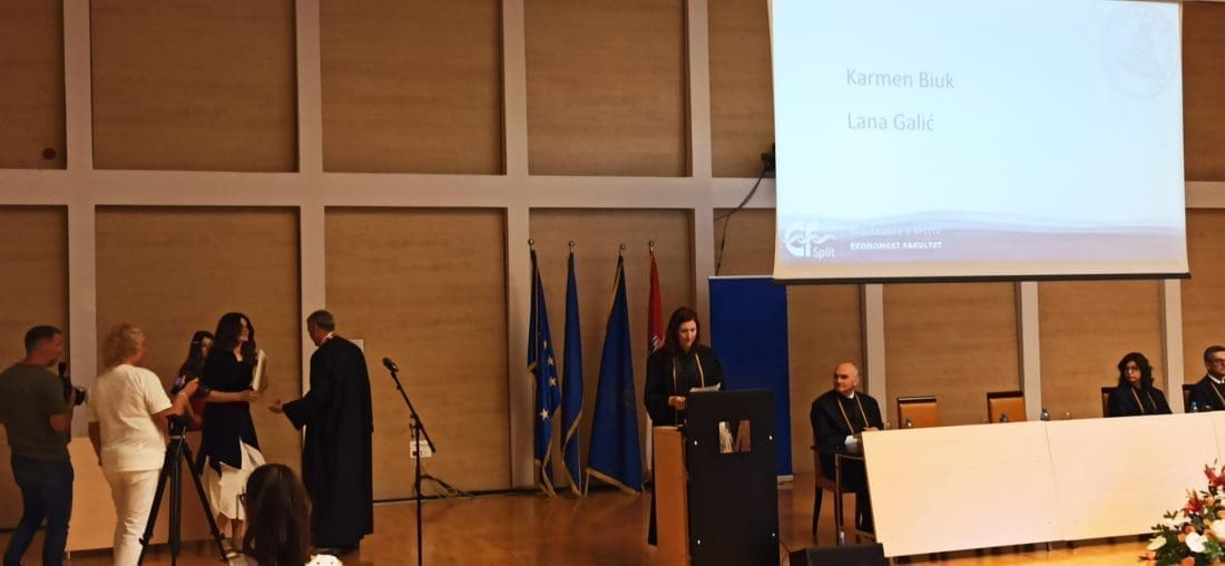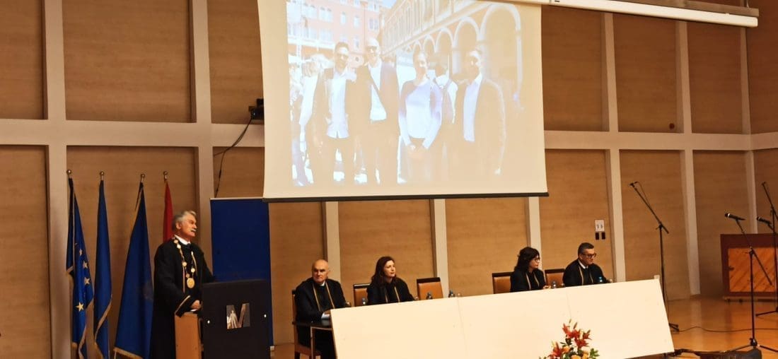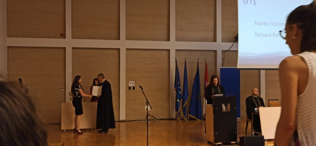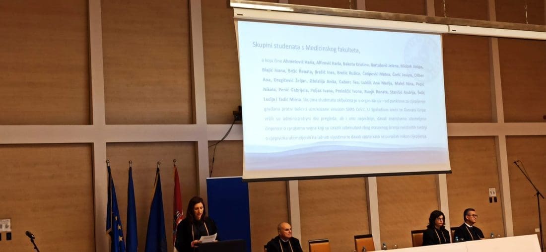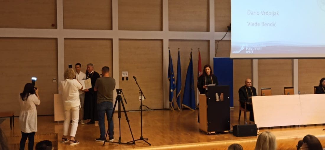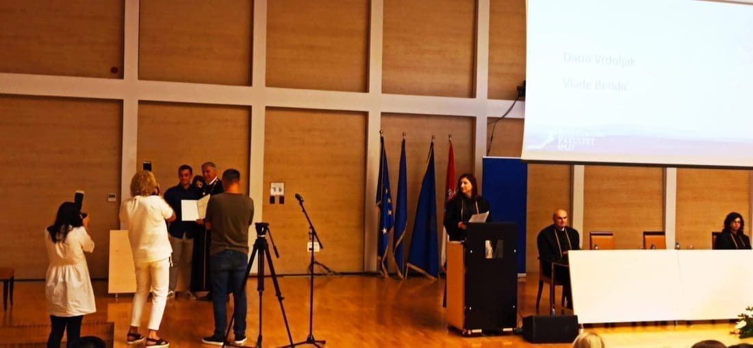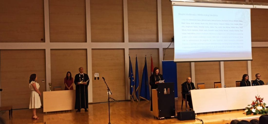 - Preporuka je najmanje što mogu dati, napisati, jer iza svih vas stoji vaš rad, vaše znanje. - naglasio je rektor Ljutić prepričavajući jednu takvu zgodu, da bi na koncu njegov govor bio popraćen dugim i bučnim aplauzom gotovo pune velike dvorane Medicine. Nakon toga su uslijedile dodjela rektorovih nagrada studentima, bilo pojedincima za izvrsnost bilo grupama za posebna postignuća...