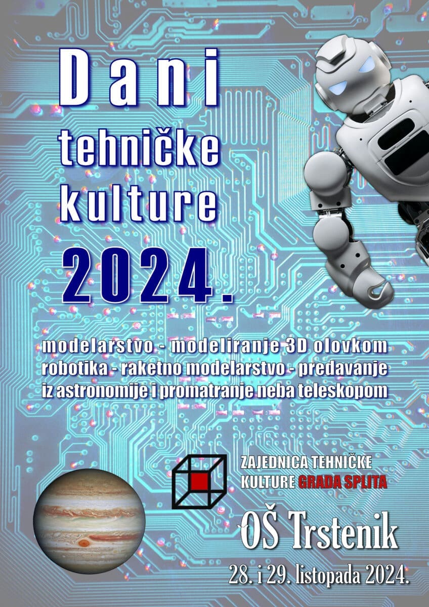 28. i 29. listopada 2024. godine u Osnovnoj školi "Trstenik" bit će održana još jedna u nizu manifestacija pod nazivom Dani tehničke kulture. Te manifestacije organizira i provodi Zajednica tehničke kulture grada Splita, u suradnji s udrugama članicama i osnovnim školama u Splitu i okolici. U sklopu Dana tehničke kulture 2024. u OŠ "Trstenik", svi zainteresirani učenici i učitelji škole imat će priliku sudjelovati na raznovrsnim radionicama iz područja modelarstva, raketnog modelarstva, robotike i modeliranja 3D olovkama, te poslušati predavanje iz astronomije i sudjelovati u astronomskom promatranju neba teleskopom.