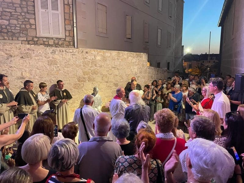 "U nazočnosti biskupa Ranka Vidovića i autora Stepinčeve skulpture Đanija Martinića koju je poklonio župi i svome gradu Supetru na ponos svih!
