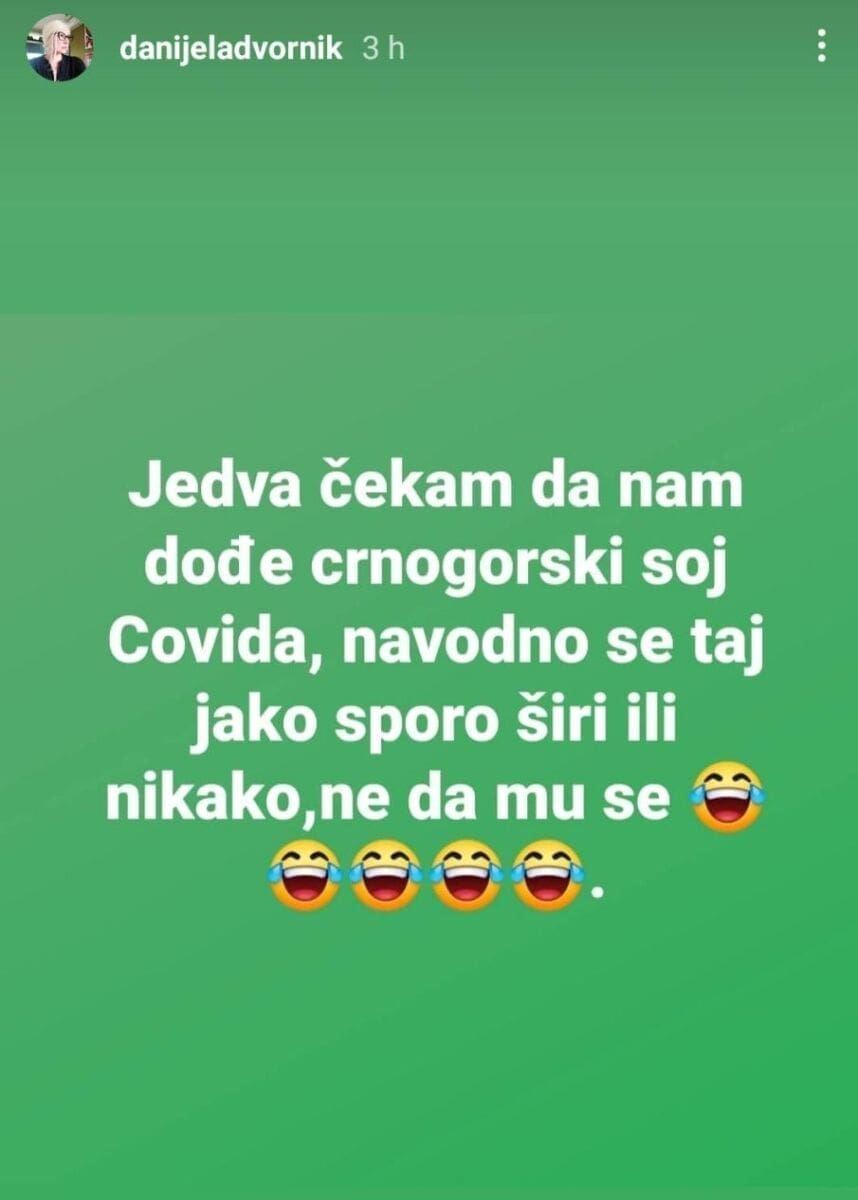Ako je slutiti po smajlićima, Daniela ne strepi od Covida, bilo ovog ''našeg'' ili ''crnogorskog''.