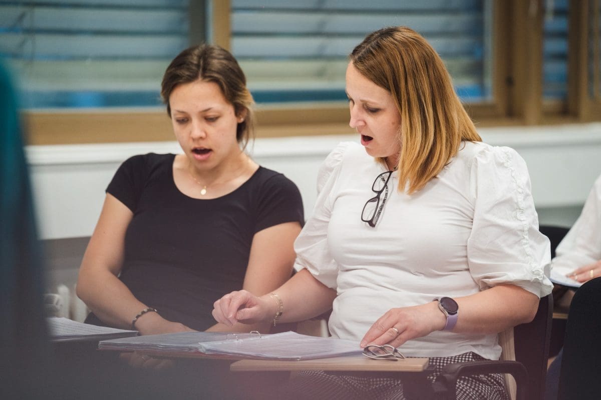 Ta splitska obiteljska liječnica i trenutna predsjednica zbora, Domjanović Vasiljević, objašnjava da ukoliko zbor želi savladati novu pjesmu maestro mora napraviti aranžman za svaki glas. Za sopran 1. i 2. i isto tako za alt 1. i 2. nakon čega polako vježba sa njima. Članovi zbora se na probama slušaju i zajednički korak po korak savladavaju novu pjesmu. Vjerovali ili ne čak dvije do tri nove pjesme prosječno nauče u samo četiri probe što je iznimno dobar rezultat.
