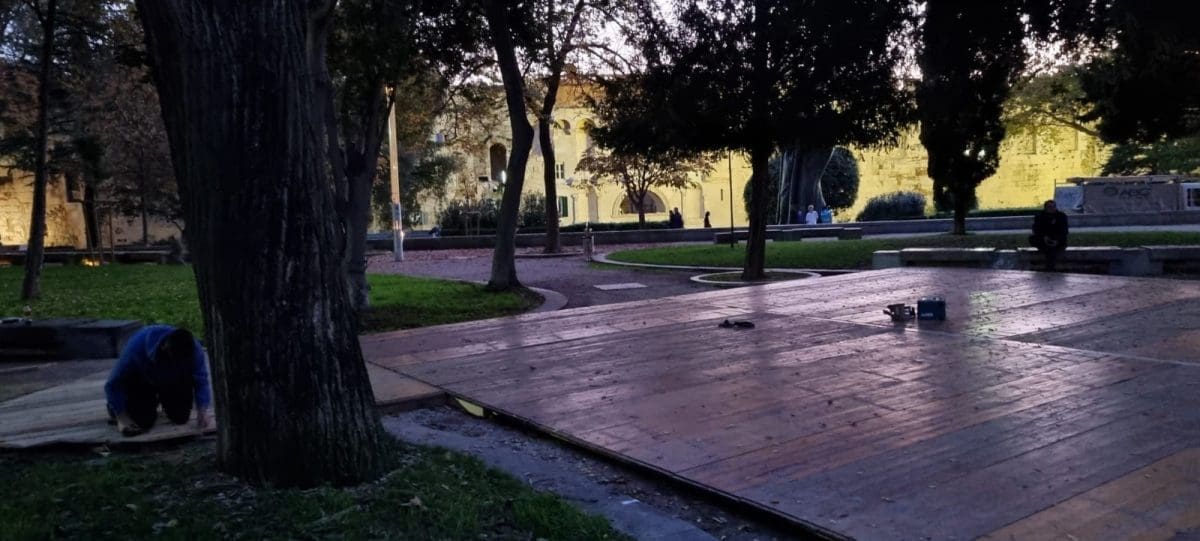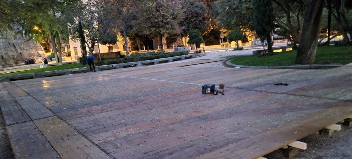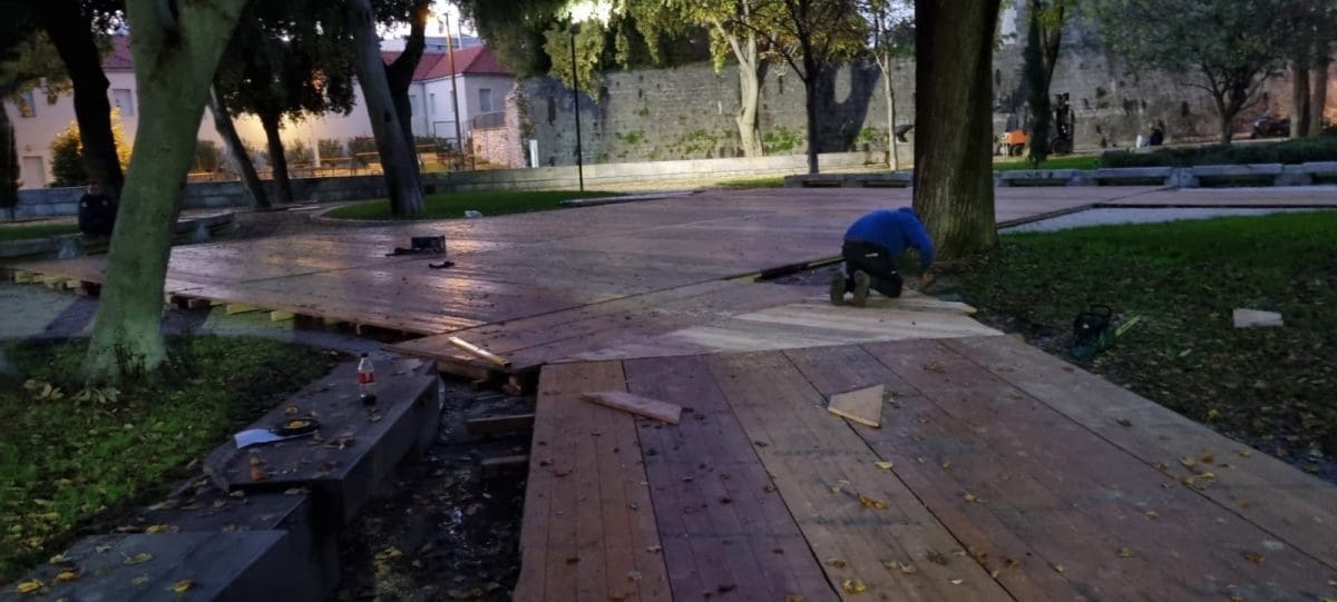 Danas su započeli radovi na postavljanju klizališta kojeg s posebnim nestrpljenjem iščekuju djeca, a kako izgleda u sumrak dana uz ugodnih 17 Celzijevaca u zraku to odvija pogledajte u foto galeriji.