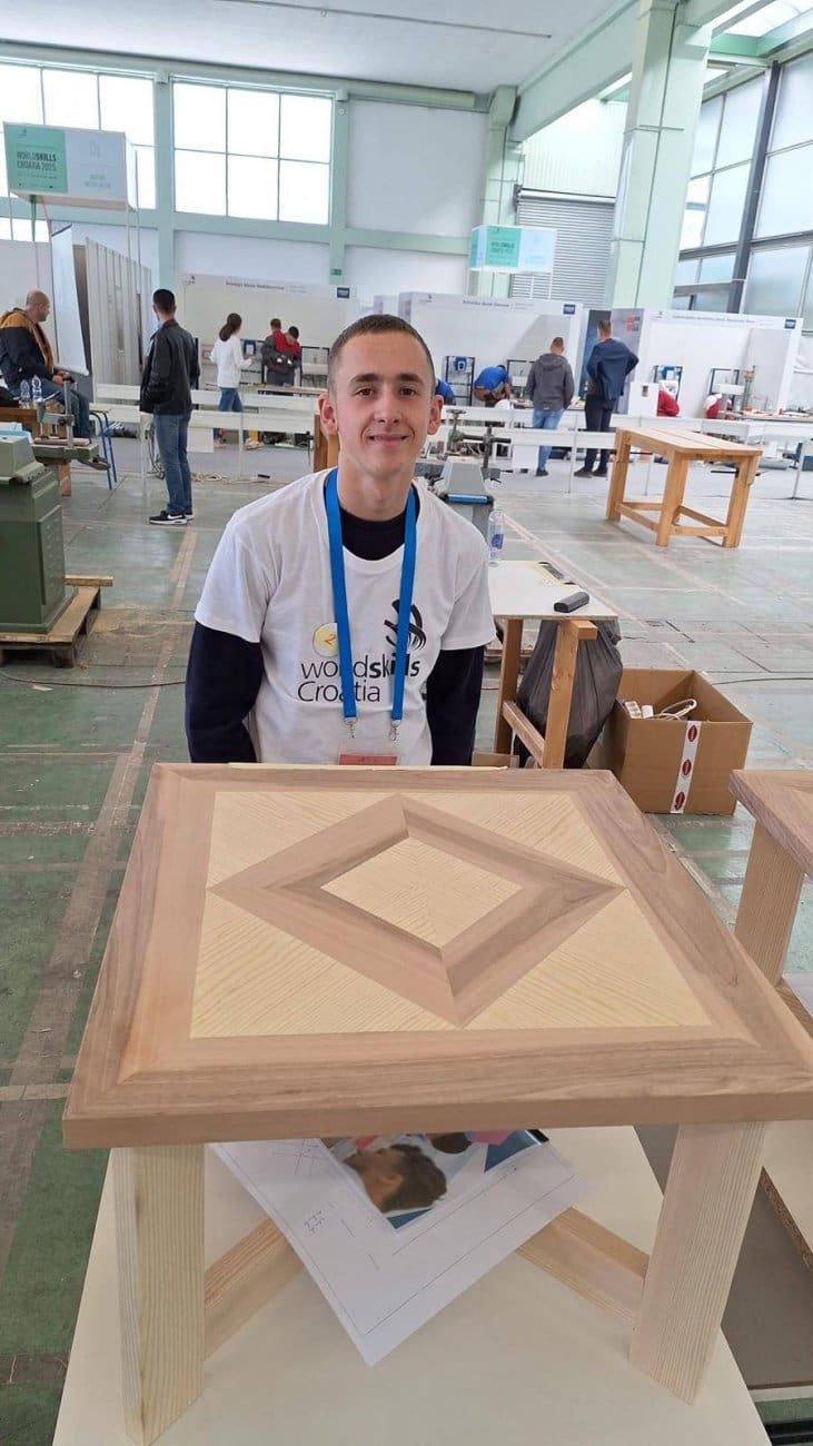 Nakon tri dana zahtjevnog natjecanja, Dario je, u konkurenciji najboljih učenika iz osam škola, zasluženo osvojio prvo mjesto. Zadatak koji je morao ispuniti bio je izrada stolića za dnevni boravak, a natjecatelji su koristili tehniku intarzije od orahovog i smrekovog furnira na MDF ploči. Uz samu izradu stolića, Dario je izradio nacrt, krojnu listu te precizno izračunao potrebne materijale za izradu.