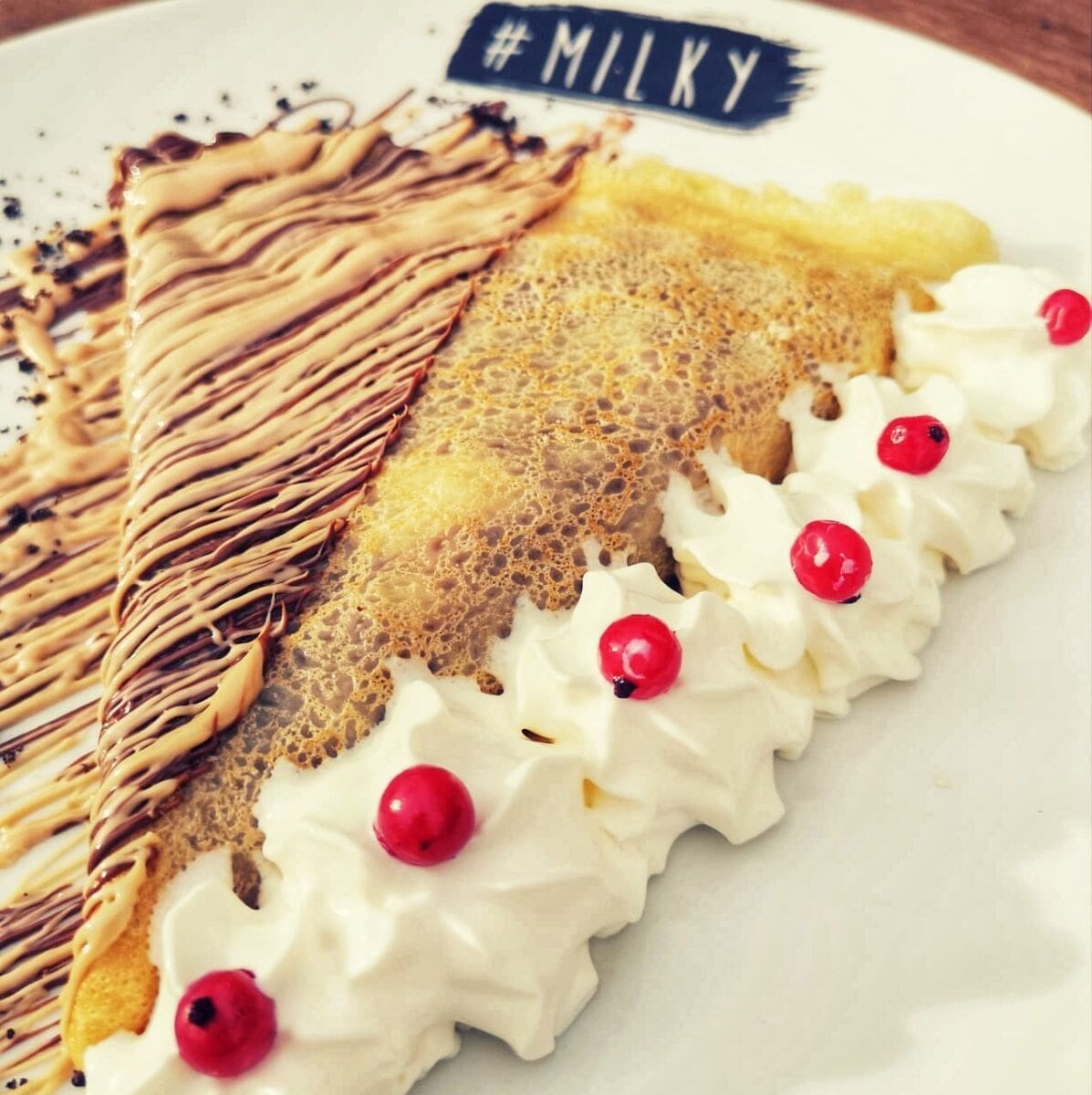 Palačinkarnica Milky na splitskim Firulama ima sve što tražite za jedno slatko popodne s vašim društvom. Desetogodišnja tradicija Milky palačinki omogućila nam da guštamo u savršeno laganim, ukusnim i lijepo dizajniranim palačinkama. Osim što su jedinstvene po izgledu, Milky svoje palačinke obogaćuje s Premium nadjevima i namazima. Kad kažemo Premium, mislimo na domaće. Tako u Milky palačinke možete dodati namaze iz domaće radinosti koji okusom podsjećaju na poznate okuse slatkiša kao što su Kinder Bueno, Raffaello, Ferrero, Oreo... namazi čije ćete okuse prepoznati i koji će vas ostaviti bez daha. A kome samo namazi nisu dovoljni kao dodatak palačinkama, u izboru su čokoladice ili keksi također svjetskih poznatih brendova te širok izbor voća i sladoleda.