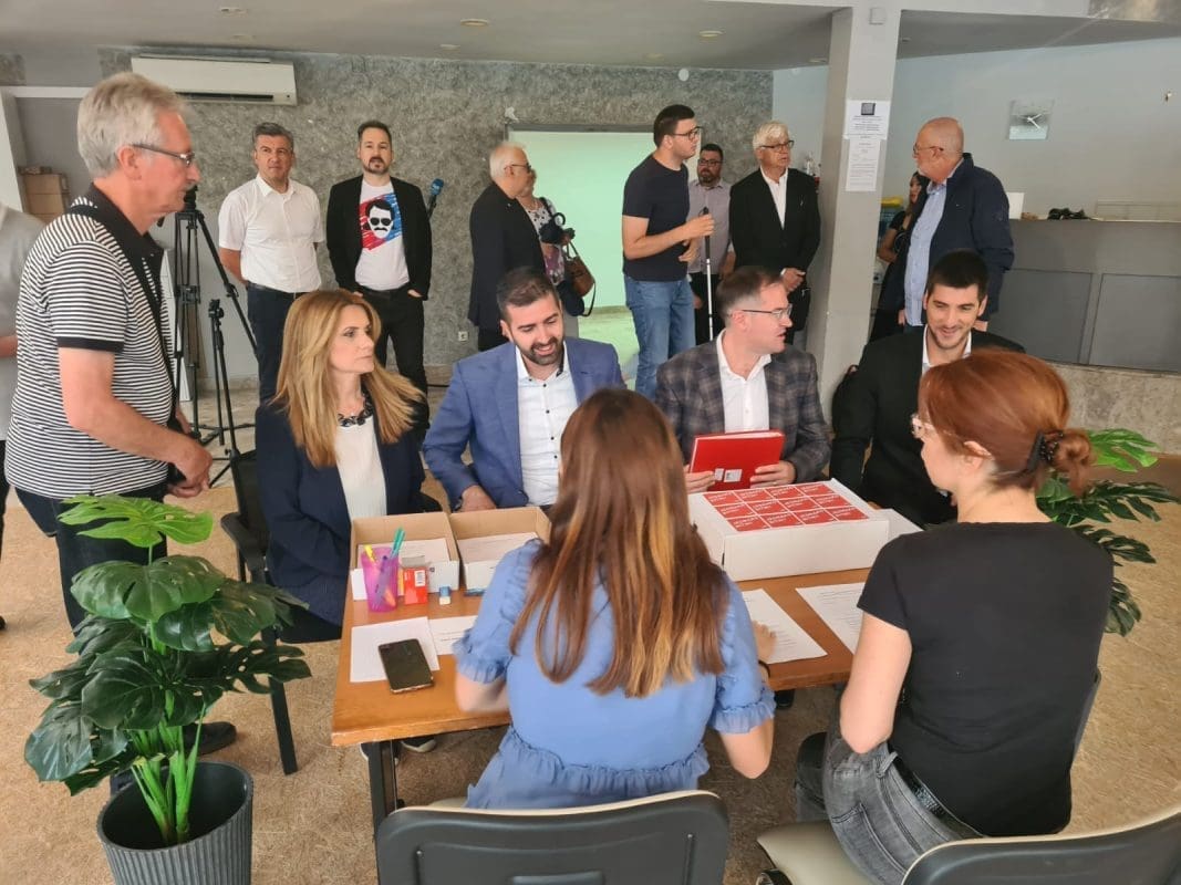 Kandidat SDP-a za gradonačelnika Splita Davor Matijević i njegovi zamjenici Suzana Piacun i Dino Sinovčić danas su Državnom izbornom povjerenstvu predali 3 000 potpisa zajedno s kandidacijskom listom za Gradsko vijeće.