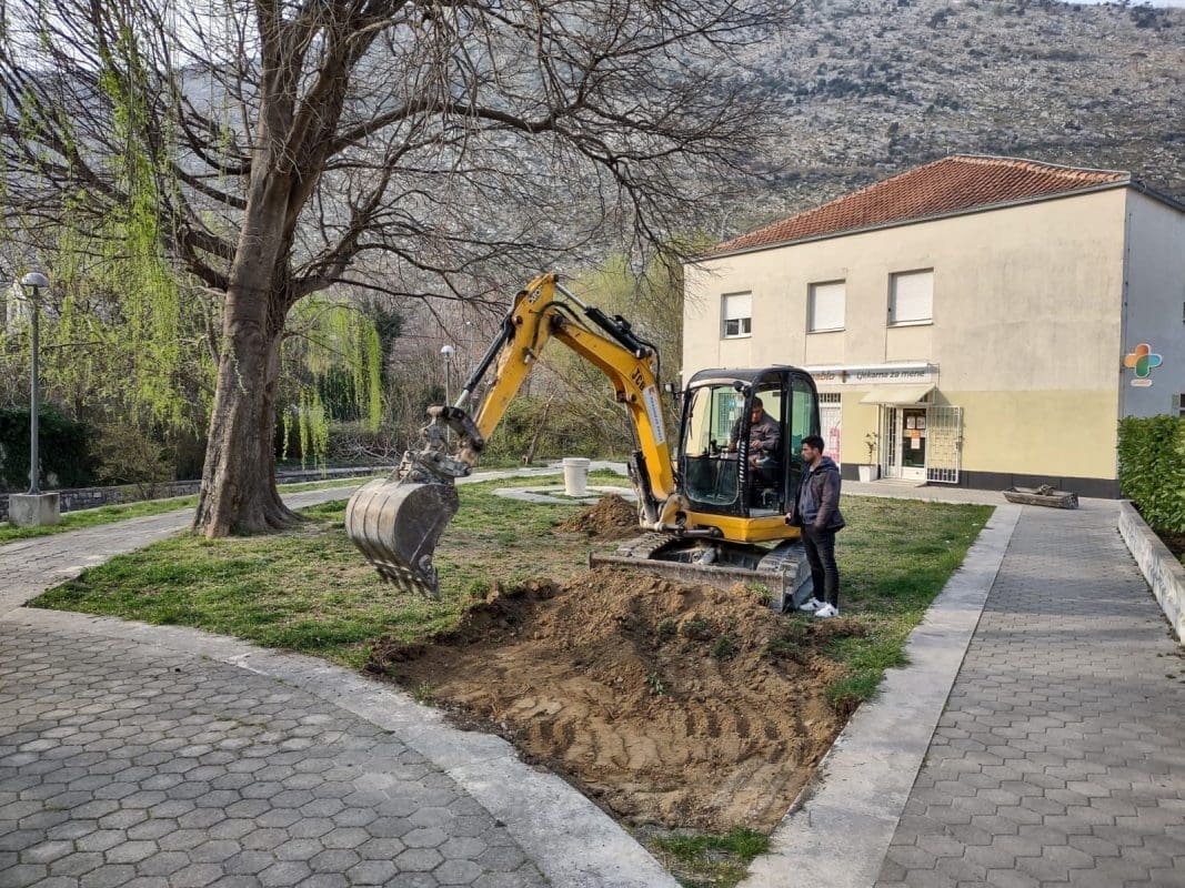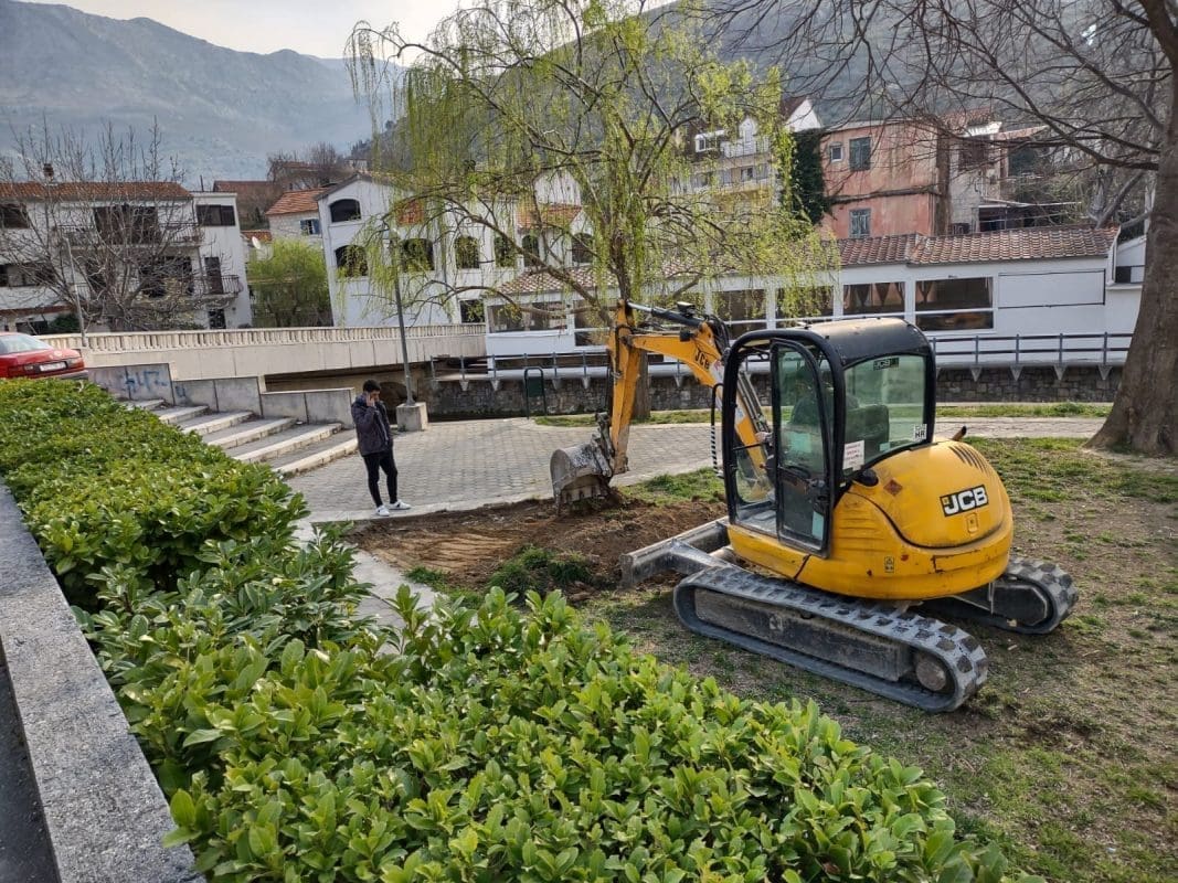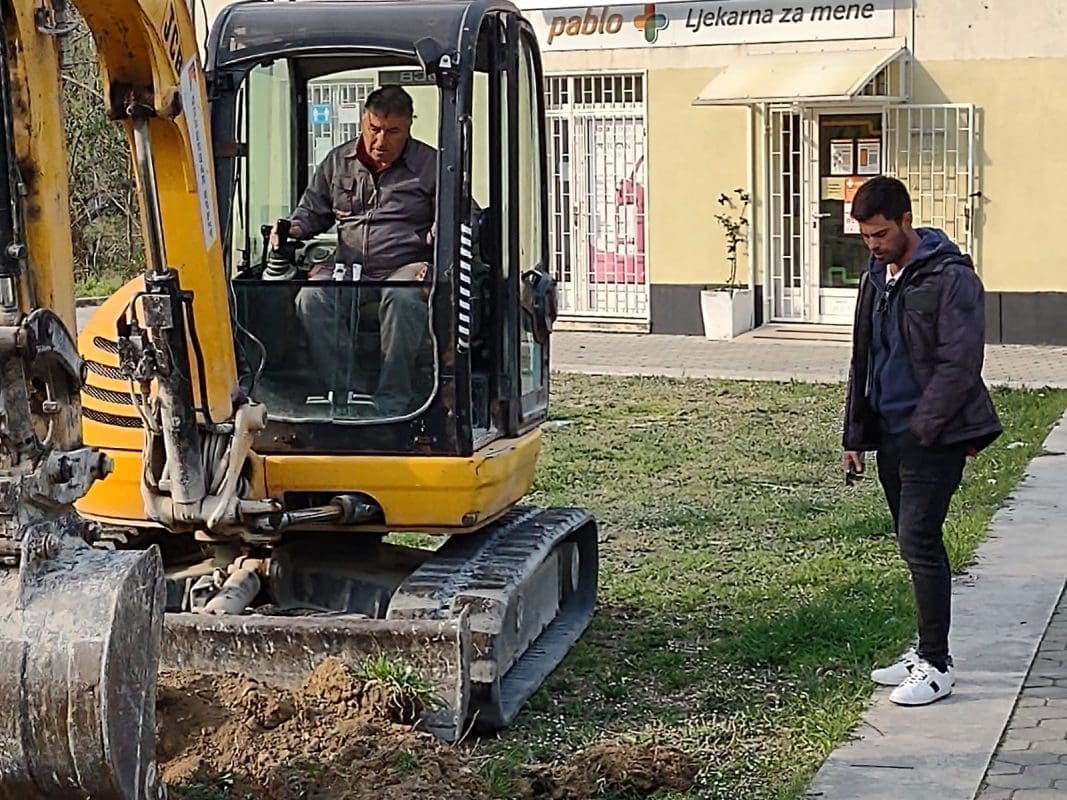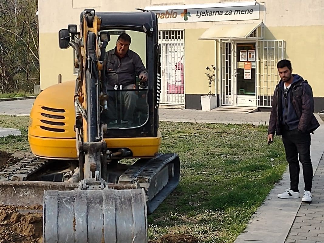 Jutros je krenulo popločavanje preostalog zelenog dijela "Bašte", odnosno prostora u centru Žrnovnice, ispod tamošnje apoteke, odnosno uz most i rijeku Žrnovnicu.