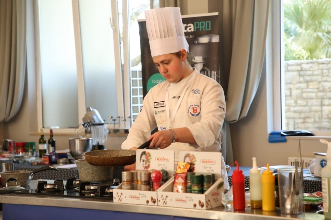 Nakon njega mladi kaštelanski kuhar Ivan Petrović i njegov mentor prof. Ivan Romac, predstavili su autorsko jelo za 46. Wordskills natjecanje koje će se održati u listopadu ove godine u Shanghaiu. Radilo se o poširanoj pastrvi na kremi od cvjetače i poriluka, s čvarcima od potrbušine pastrve, cvjetovima kelja i umacima u koje je dodan i divlji koromač. Korišten je prah gljiva i štošta drugo što bi ovo jelo trebalo učiniti atraktivnim na tom prestižnom svjetskom natjecanju.