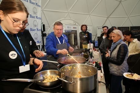 Drevna slovenska jela kojima su se gostili grofovi Celjski, bila su tema su master classa renomiranog chefa Dušana Veršeca, ŠKMER-ovog ambasadora za Sloveniju. Predani je istraživač gastronomske baštine svoje zemlje, a ima 40-ak godina karijere u boljim hotelima Slovenije i Hrvatskima gdje je vodio kuhinje te usput i istraživao oko 170 autohtonih slovenskih jela od kojih neka godinama predstavlja na Biserima mora.