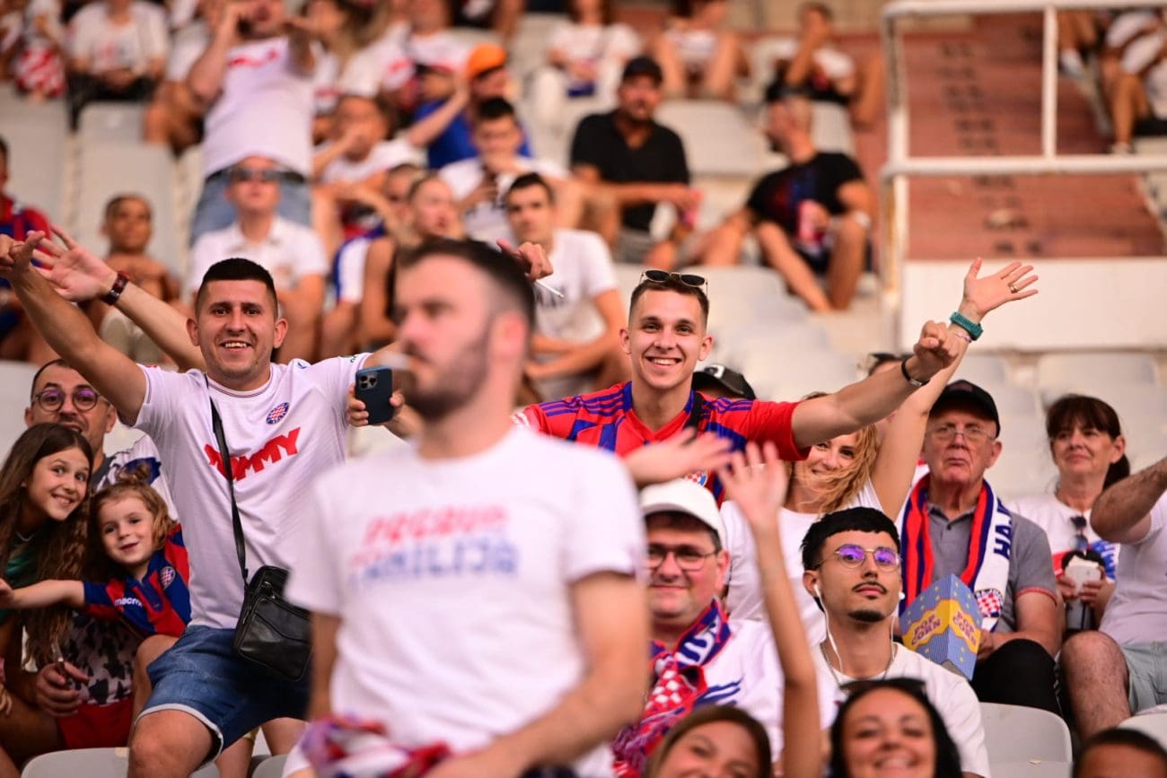 Uz strastvene navijače, utakmicu s tribina prate i brojna poznata lica, među njima su Ante Rebić, Ivan Rakitić.