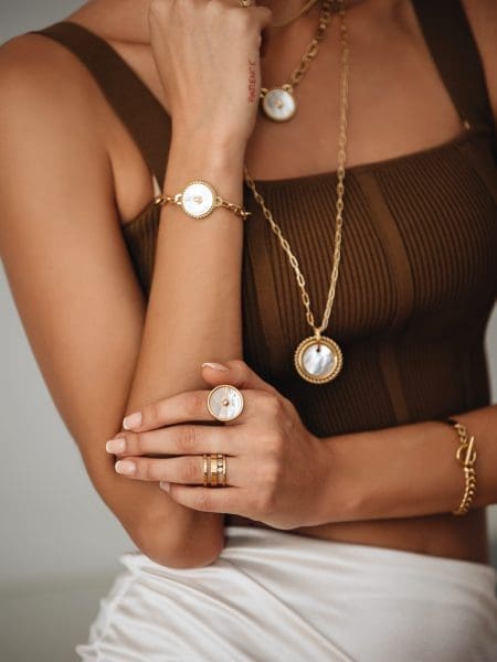 Kolekcija je izrađena od nehrđajućeg čelika kojemu je dodana 18 karatna pozlata. Upotpunjena je poludragim kamenjem poput oniksa, malahita, akvamarina, apatita, lapisa i amazonita pa za ovaj trendovski nakit uobičajeni izraz „manje je više“ jednostavno ne vrijedi. Nanizane ogrlice, veliko prstenje s poludragim kamenjem u boji, nizovi naušnica i narukvica se odlično uklapaju u sve outfite te ga čine pravom poslasticom za sve zaljubljenice u nakit.