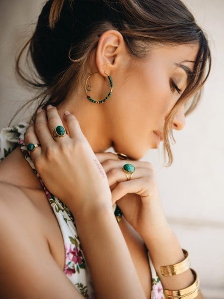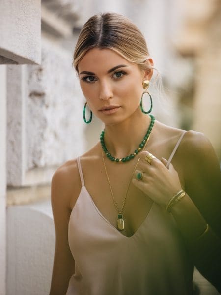 Današnji modernizirani boho stil prigrlio je sve nijanse boja preko bijele, jarko plave, narančaste, terakote pa sve do vibrantne zelene koja u kombinaciji s različitim strukturama i nezaobilaznom zlatnom bojom čini De'llure nakit idealnim za svaku prigodu.