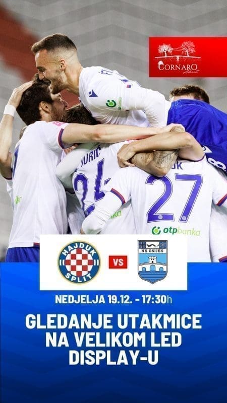 Pozivnica je to za sve željne adventskog ugođaja i utakmice Hajduka u fantastičnom ambijentu. Hajduk od 17:30 igra protiv Osijeka na rasprodanom Poljudu.
