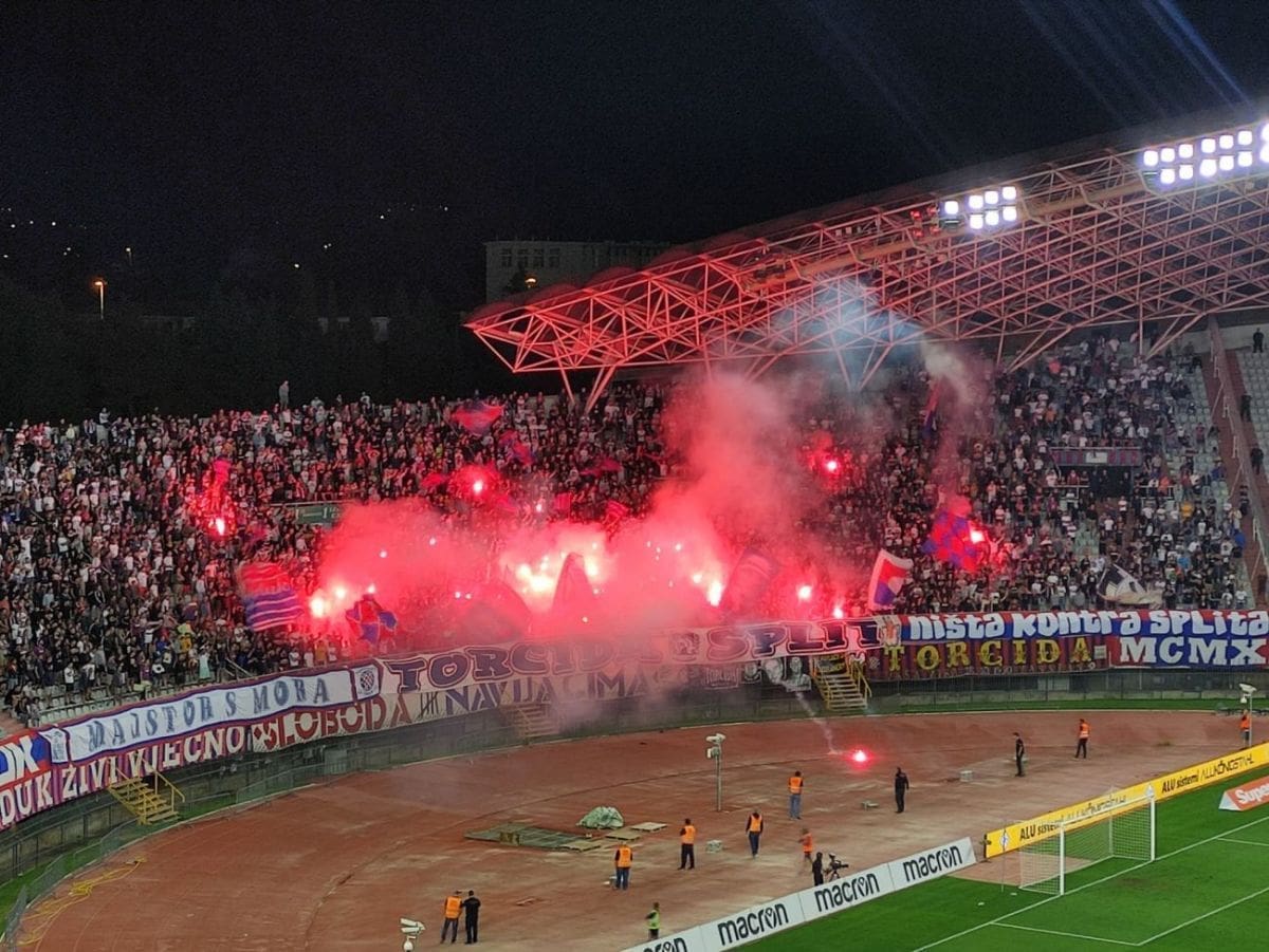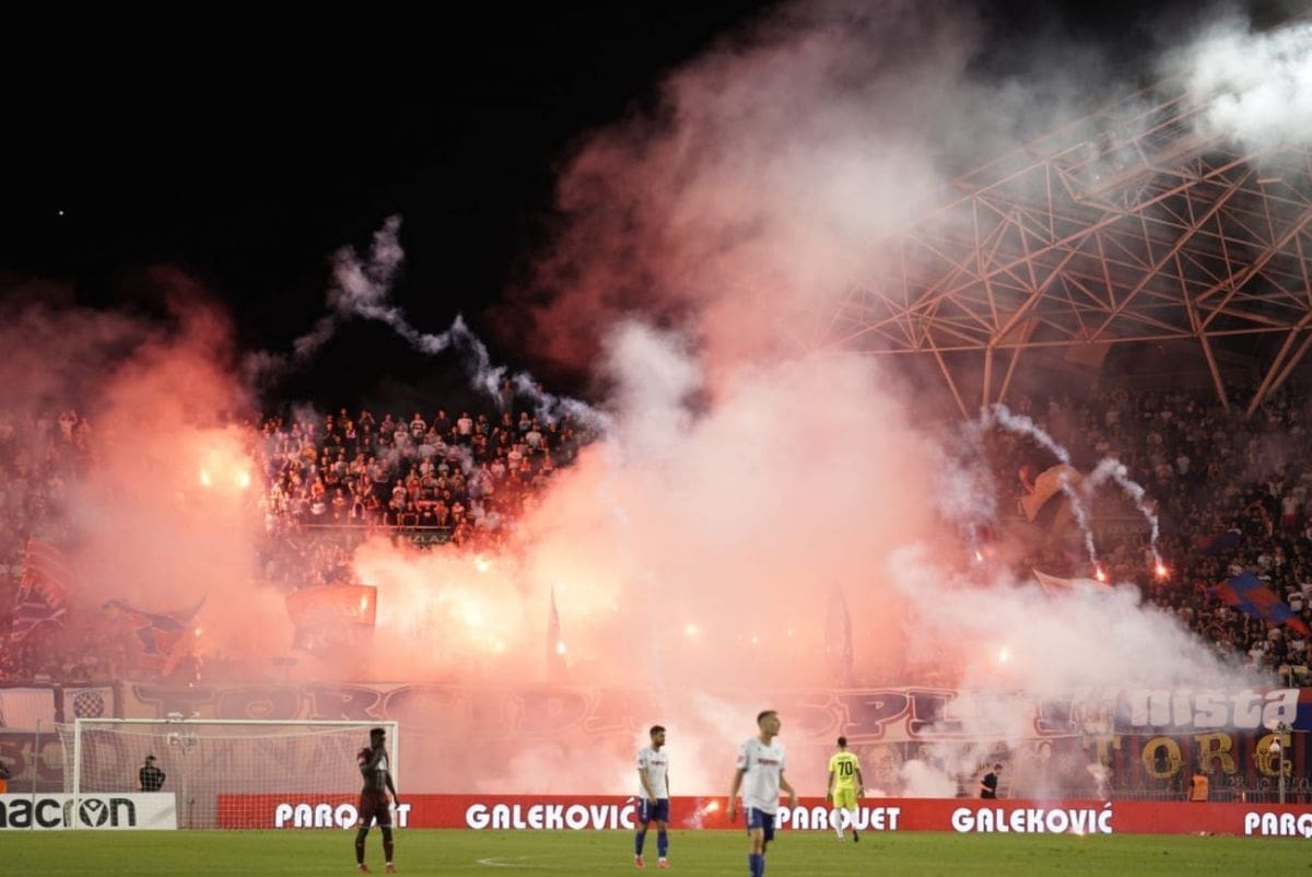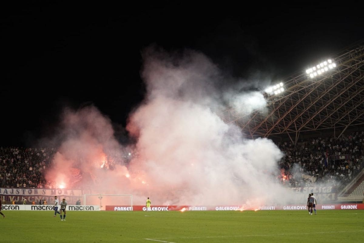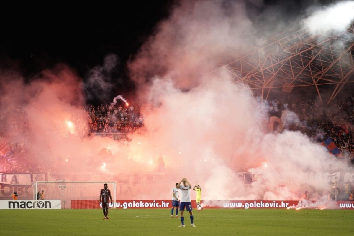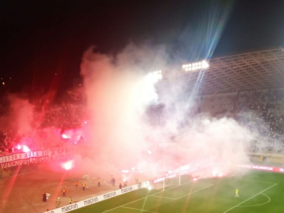 U 78. minuti Torcida je na Sjeveru upriličila veliku bakljadu. Dobar dio pirotehnike završio je na stazi, ali i na terenu, zbog čega je sudac nakratko prekinuo susret dok se dim ne raziđe.