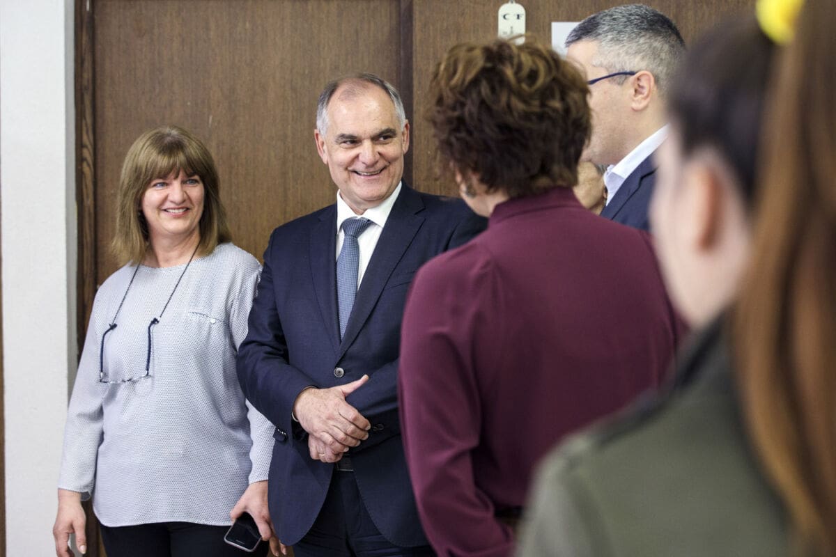 Nakon srdačne dobrodošlice i druženja sa zaposlenicima, gradonačelnik Andro Krstulović Opara rekao je kako je sve što se oko ove Ustanove zbiva dio projekata usmjerenih na poboljšanje položaja osoba s invaliditetom. Posebno se zahvalio ravnateljici Editi Maretić Dimlić koja je preokrenula situaciju u DES-u u pozitivnom smjeru.