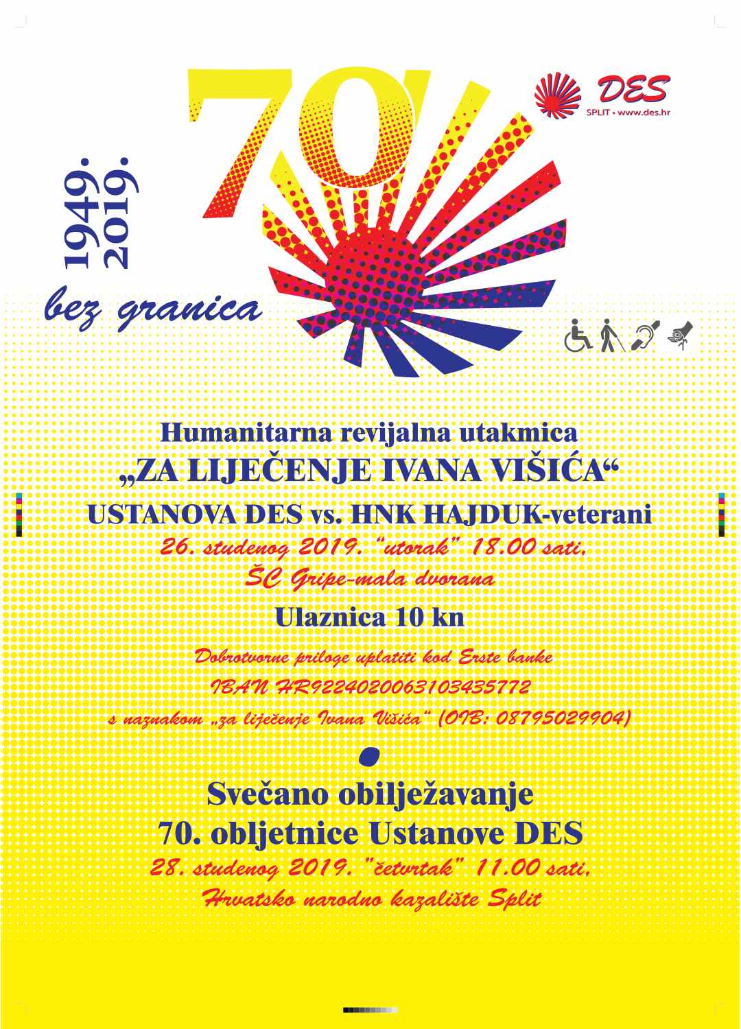 Istoga dana će se u maloj dvorani ŠC Gripe s početkom u 18 sati odigrati Humanitarna revijalna utakmica "Za liječenje Ivana Višića". Snage će suprotstaviti Ustanova DES i veterani HNK Hajduk!