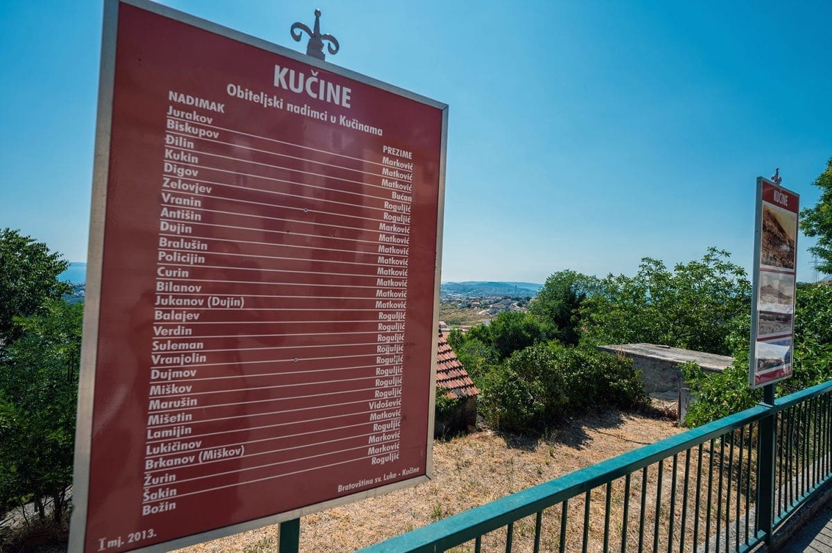 Na istoku Solina, na južnoj padini Mosora danas su Kučine, nekoć srednjovjekovno selo zvano Kuk ili Pod Kukom. Ime stijene Kuk, koje se spominje u oporuci svećenika Crnote iz 1144. godine u latiniziranom obliku Pot Chilco, prenijelo se na selo pod njim u obliku Pod Kukom, a od 18. stoljeća to selo počinje se nazivati imenom Kučine i u zajedničkoj je župi s Mravincima. Ono je preteča današnjim Kučinama i Mravincima. Obuhvaćalo je zemlje od kojih su mnoge do danas sačuvale svoja stara imena: pod sv. Teklom, Dračevac, Doci, Pod Gustirnom, Latičine, Trstenik itd.