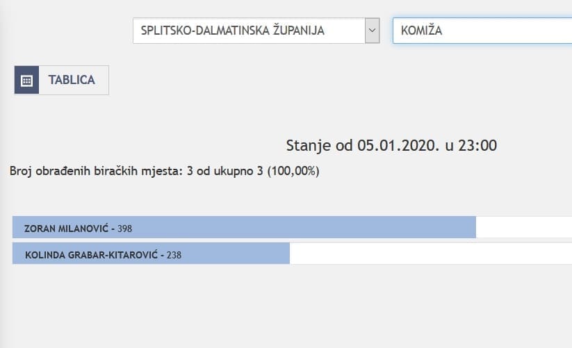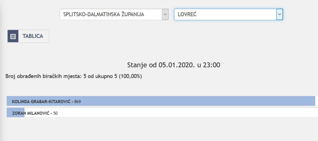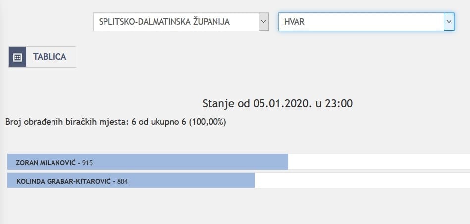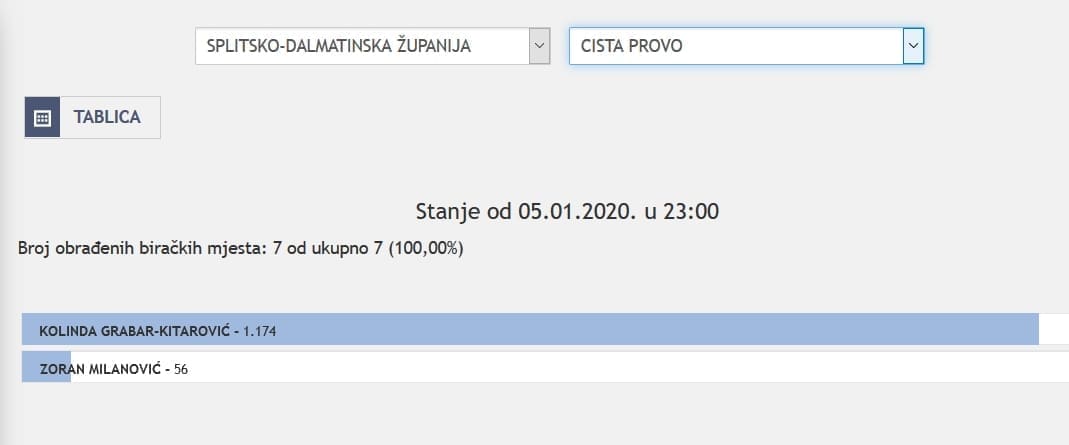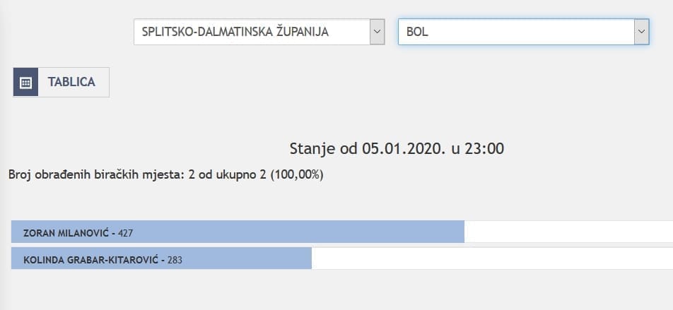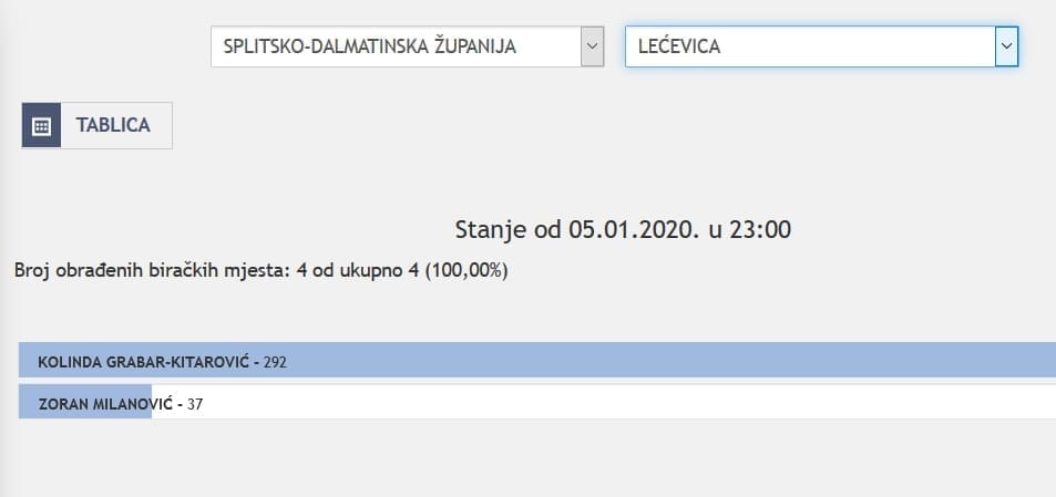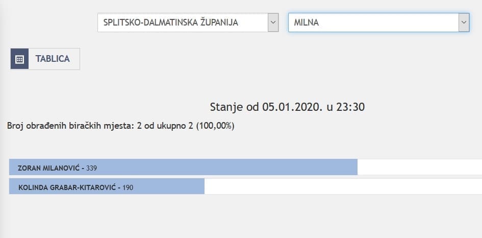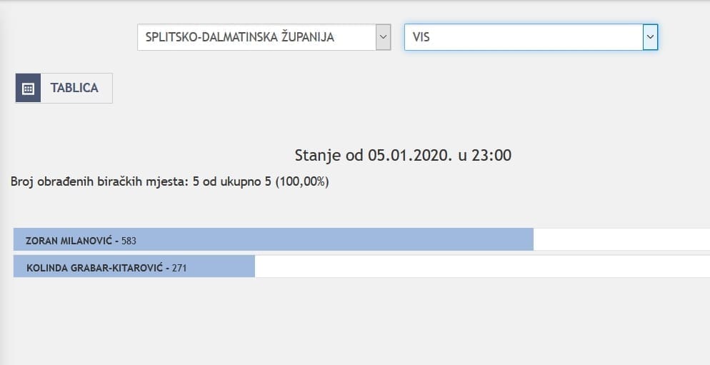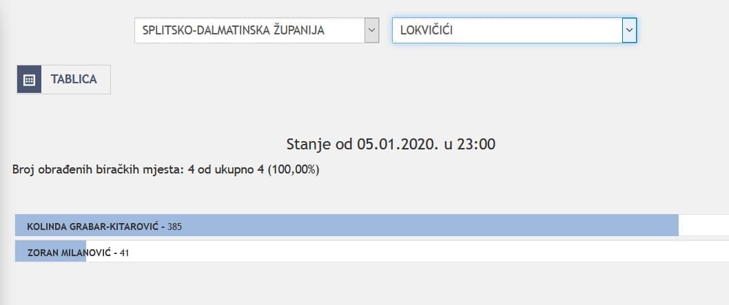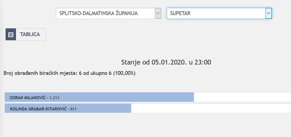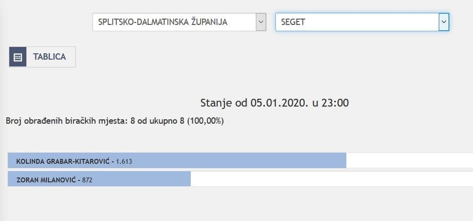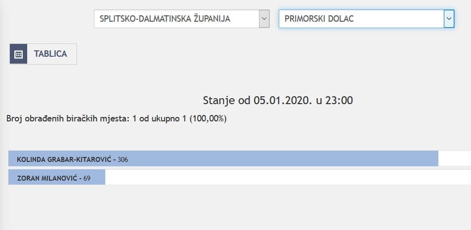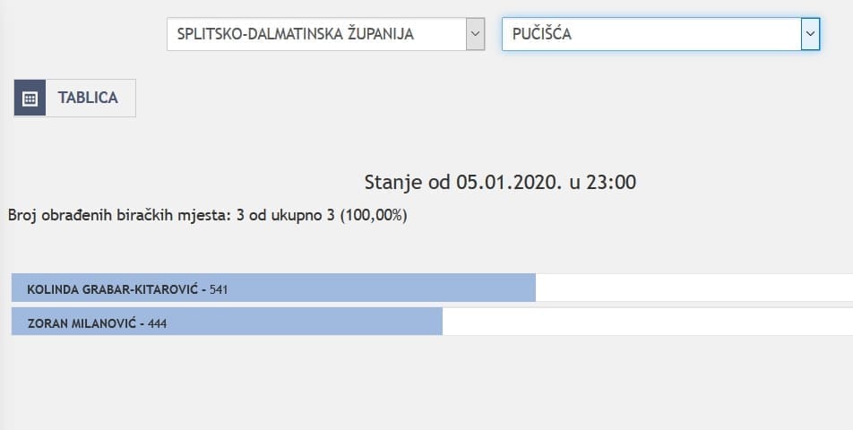 U Splitsko-dalmatinskoj županiji najviše je glasova osvojila Kolinda Grabar Kitarović. Nakon što su obrađena sva glasačka mjesta, Kolinda je osvojila 121.975 glasova, a Zoran Milanović 87.503 glasa.