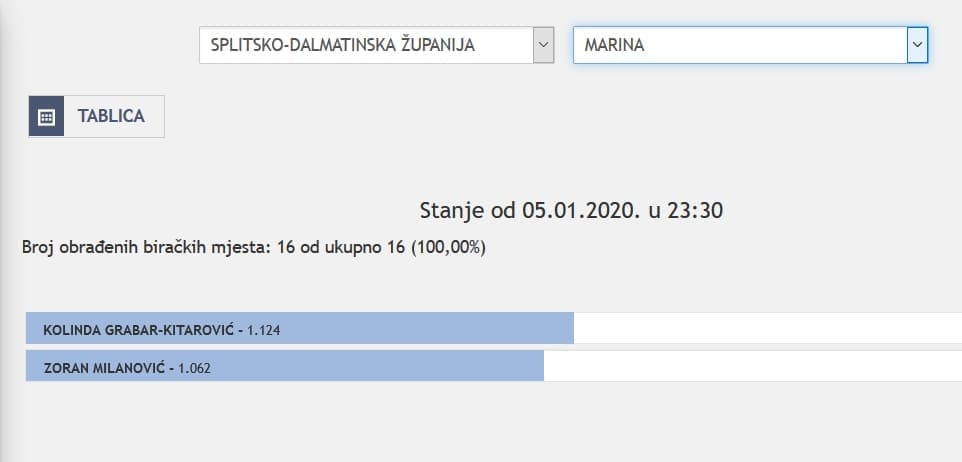 Po gradovima i općinama situacija je prilično zanimljiva. U svim gradovima i općinama Zagore, osim Zadvarja, najviše glasova je odnijela Kolinda Grabar-Kitarović, dok je uz obalu i na otocima situacija promjenjiva. Ipak, najveće gradove uglavnom je osvojio Zoran Milanović.