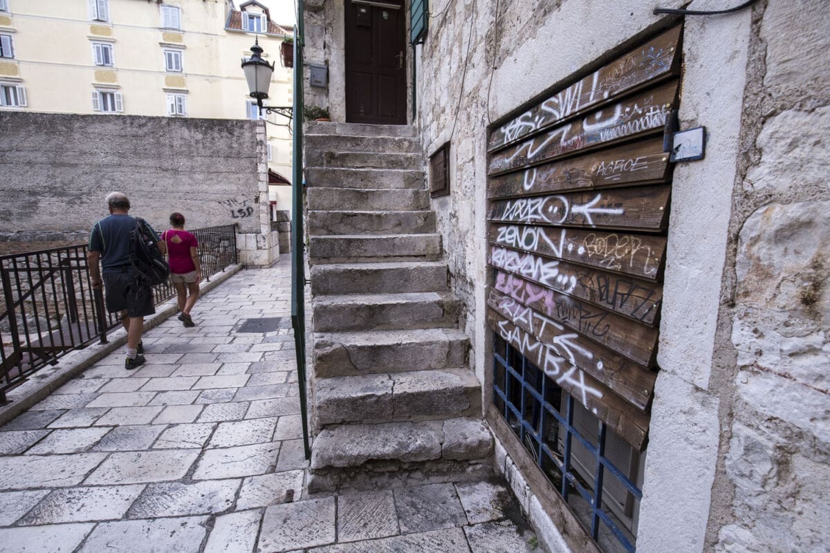 Sada, kada službeno znamo da je najpopularniji i najdominantniji spomenik u prostoru stare jezgre u lošem stanju, odlučili smo prošetati po Palači i vidjeti u kakvom su stanju manje eksponirani dijelovi splitske ljetne hraniteljice. Šetnja od nekih desetak minuta, zamišljena kao kratka tura od Zlatnih vrata do Triklinija pokazala nam je da su stanari i udruge dobrim dijelom u pravu kada pozivaju na red.