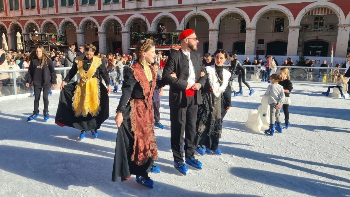 Program su završili Devićevi plesači izvedbom "Starih splitskih plesova" koji su se nakon završetka koncerta nastavili i na obližnjem klizalištu.